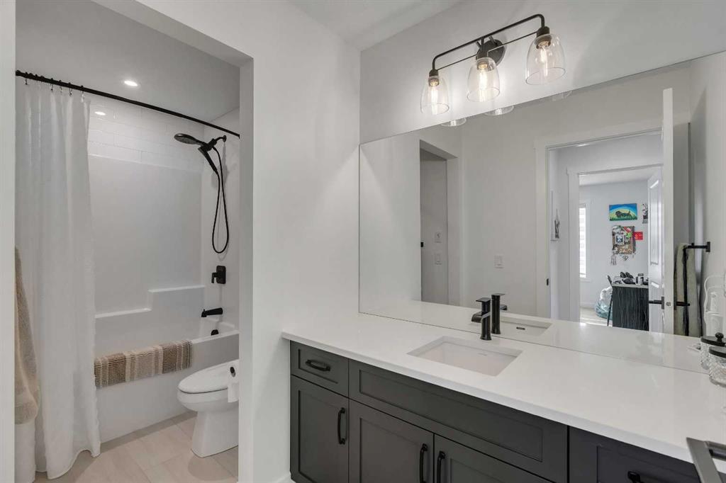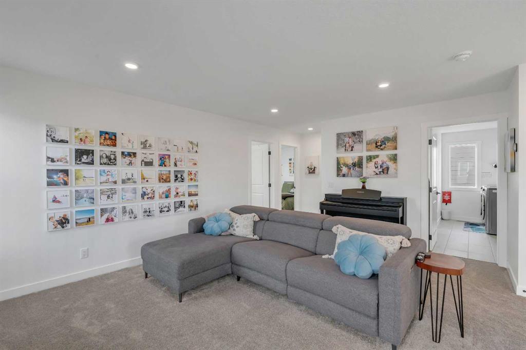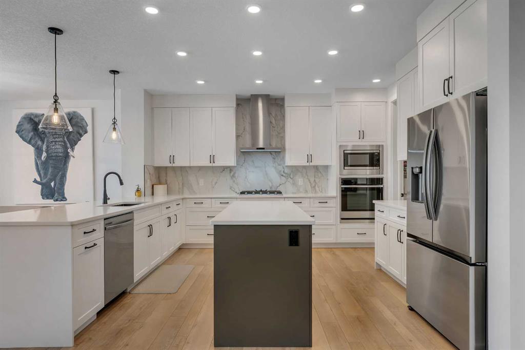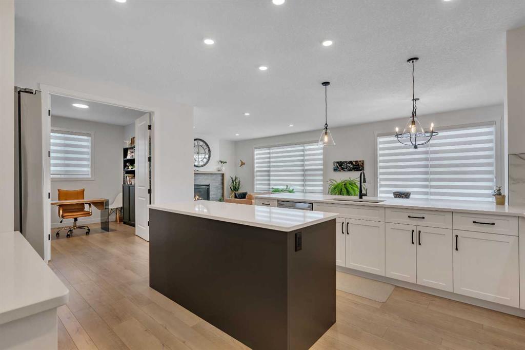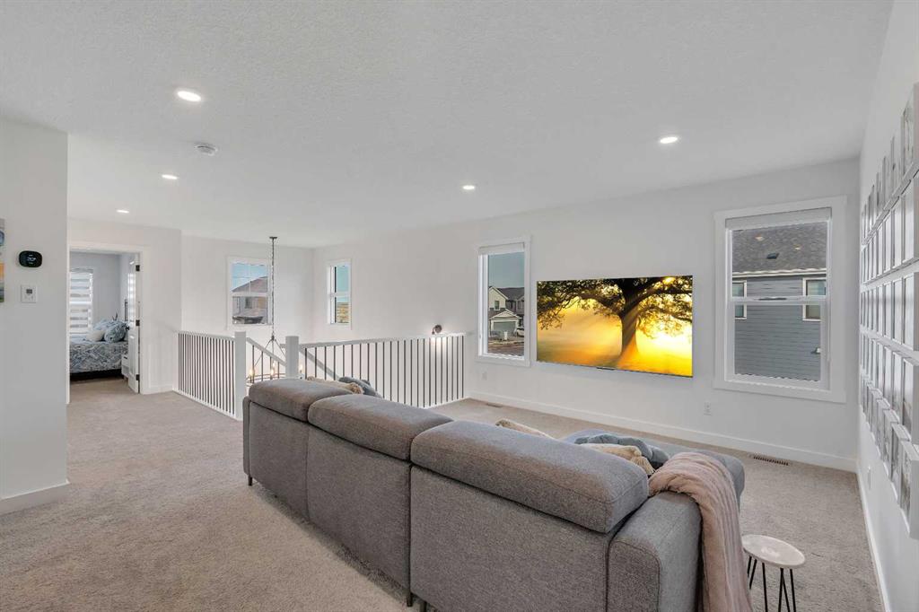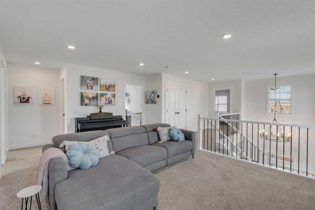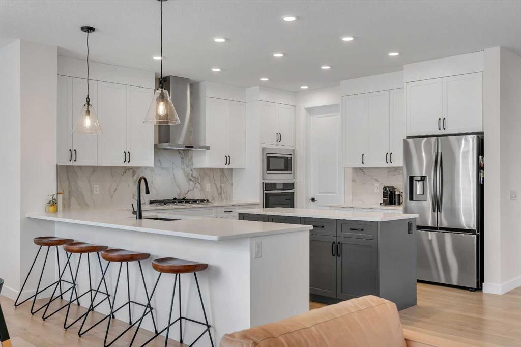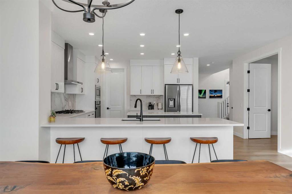 Welcome to 649 Sailfin Drive, located in the brand new lake community of Harmony just 10 minutes west of Calgary and approximately 30 minutes to the mountains, where you are buying more than just a home but a true lifestyle. This 2025 Daytona built home presents like new and features numerous upgrades throughout including being situated on an oversized lot and in one of the most desirable phases of Harmony within walking distance to the lake and community amenities. Offering over 2600 sq ft of living space with 3 bedrooms and 2.5 bathrooms, the layout is both functional and thoughtfully designed for families. The main floor welcomes you with a large foyer, private office with French doors, 2 piece powder room, and a spacious living room centred around a gas fireplace, perfect for family time or entertaining after a day at the lake. The dining area flows seamlessly into the chef’s kitchen, showcasing full height custom cabinetry, a gas range, built in wall oven and microwave, quartz countertops throughout, a large breakfast bar, and an oversized island with plenty of space for a growing family. This level is completed by a massive walk through pantry that connects to the mudroom with custom lockers and direct garage access, ideal for busy households. Upstairs you will find a large bonus room, 3 bedrooms, and a well planned layout. The primary bedroom measures approximately 14.5 by 15.6 ft and features a large walk in closet along with a spa inspired ensuite offering a double vanity, custom stand up shower, and standalone soaker tub. The second and third bedrooms are generously sized and each includes a large walk in closet. You will also find a spacious laundry room with sink and a full 4 piece bathroom on this level. Mechanical highlights include 2 high efficiency furnaces, 2 central A C systems, and a sump pump. Additional upgrades include a custom high end blind package throughout, railing upgrades, and many more. Why wait 12 months for a new home when you can move in today and save the GST. Set in the award winning community of Harmony with its 2 private lakes, world class golf at Mickelson National, extensive pathway system, playgrounds, and future village centre, this home offers an exceptional blend of comfort, quality, and lifestyle. Please book your private shwoing today.