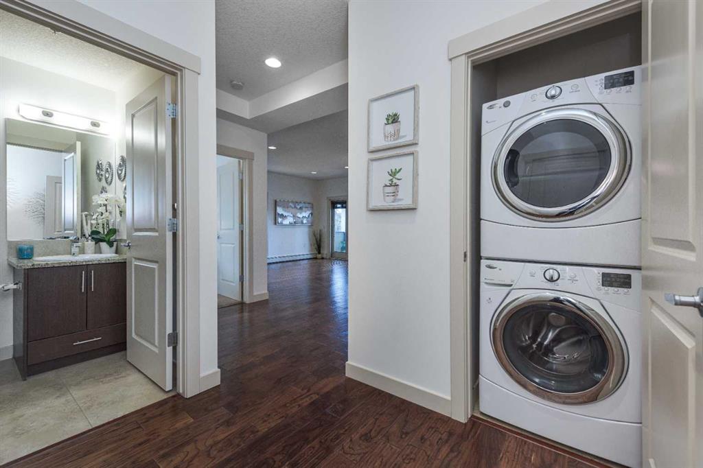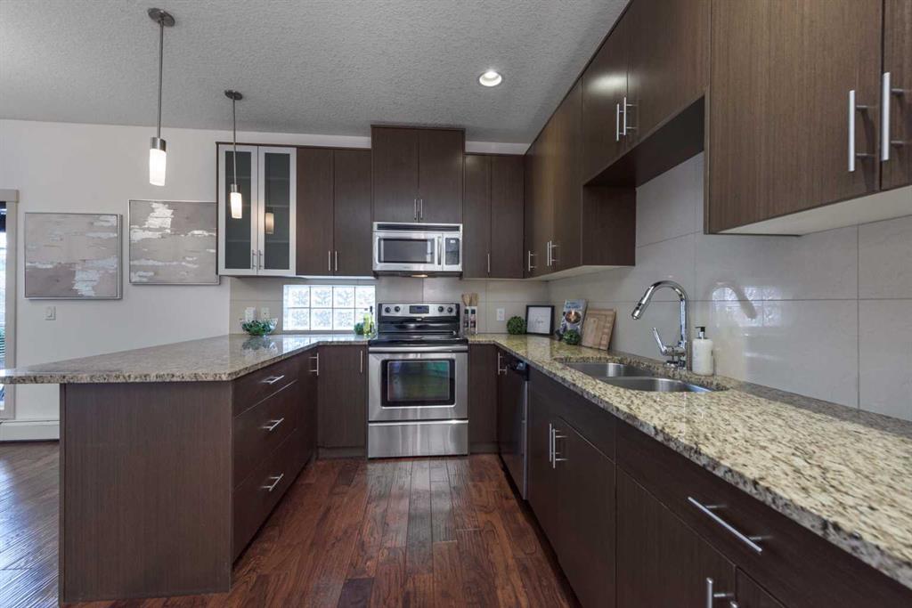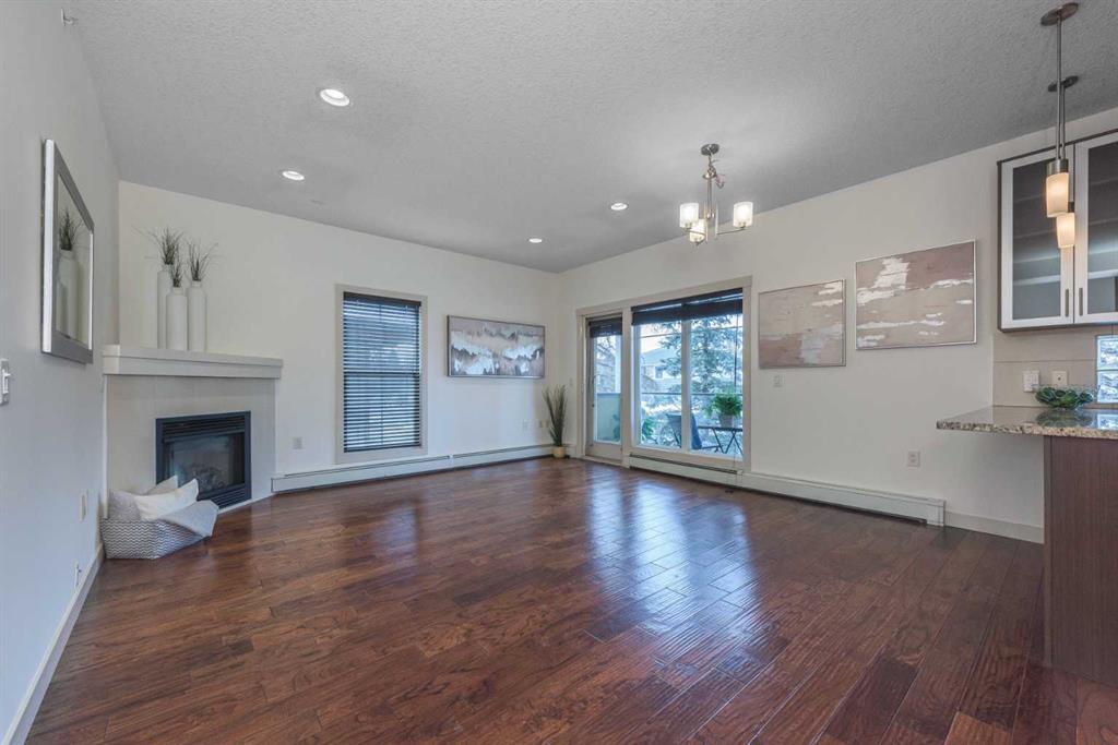 Welcome to this exceptional and roomy 725 SF SW CORNER suite located in the highly sought-after community of Elboya, one of Calgary’s most desirable inner-city neighborhoods. Perfectly positioned just steps from Chinook Mall, the amazing Stanley Park, and minutes to downtown, this home offers an unbeatable combination of convenience, comfort, and style. The bright, open-concept layout is flooded with natural light from large windows and features gleaming hardwood floors throughout. The inviting living area is anchored by a cozy gas fireplace, creating a warm and welcoming space for everyday living or entertaining. The sleek, contemporary oversized kitchen is a true showpiece, complete with granite countertops, stainless steel appliances, extra height cabinets, modern pendant lighting, glass block window detail, a generous pantry, and an oversized island ideal for meal prep or casual dining. The spacious primary bedroom offers a wall of closets and a peaceful retreat at the end of the day. The elegant 4-piece bathroom is thoughtfully designed with a luxurious soaker tub, floor-to-ceiling tile, and a rainfall showerhead. Additional conveniences include in-suite stacked laundry and an assigned underground parking stall. Step outside to enjoy your private west facing balcony—perfect for relaxing at the end of the day. With specialty restaurants, cafés, urban parks and walking/biking paths, this home delivers effortless urban living in a premier location. Commuting couldn’t be easier with Macleod Trail, public transit & the 39th Avenue LRT station nearby. An outstanding opportunity to own a stylish, move-in-ready condo in Elboya—ideal for first time buyers, professionals, downsizers, or investors alike. Seize this opportunity today and book your viewing!