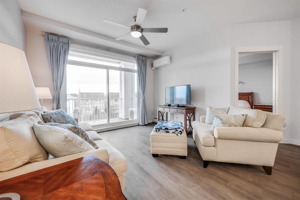 Welcome to effortless living in sought-after Cranston Ridge. This west facing unit enjoys mountain views along with an abundance of light and privacy as there are no neighbors facing into your unit. The beautifully designed 2-bedroom, 2-bathroom condo offers a smart, open-concept layout ideal for both everyday comfort and entertaining. The well-appointed kitchen, with granite countertops and a large breakfast bar along with stainless steel appliances, flows seamlessly into the living and dining areas, creating a bright and welcoming space to relax or host guests. The primary bedroom features a private ensuite and large walk-in closet, dual sinks, spacious shower and extra storage space. On the other side of the unit the second bedroom provides flexibility for guests, a home office, or roommates, with their own 3-piece bathroom. In-suite laundry contains a stacked washer & dryer, so you don't have to leave home to do your laundry as well extra storage. A well-sized balcony directly off of the living room lets you enjoy the abundant sunshine, the gorgeous sunsets and also includes a bbq gas line. Enjoy the convenience of titled heated, underground parking, keeping your vehicle secure and protected year-round. Conveniently located directly in front your parking stall is an assigned storage locker. Located in a quiet, well-maintained complex that is a 5-minute walk to the ridge in Cranston that offers sweeping views of the valley, and easy access to many parks and pathways. The South Calgary Hospital, the Seton YMCA and the many shops and restaurants in Seton, are all within a 10-minute drive. Quick access is available to both Deerfoot Trail and Stoney Trail and there are two schools within walking distance. This home offers the perfect balance of comfort and connectivity. Ideal for first-time buyers, downsizers, or investors—this is Cranston living at its best in one of Calgary’s most desirable southeast communities.