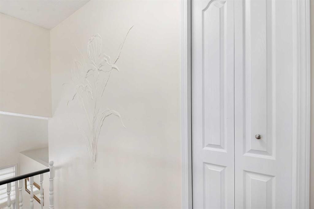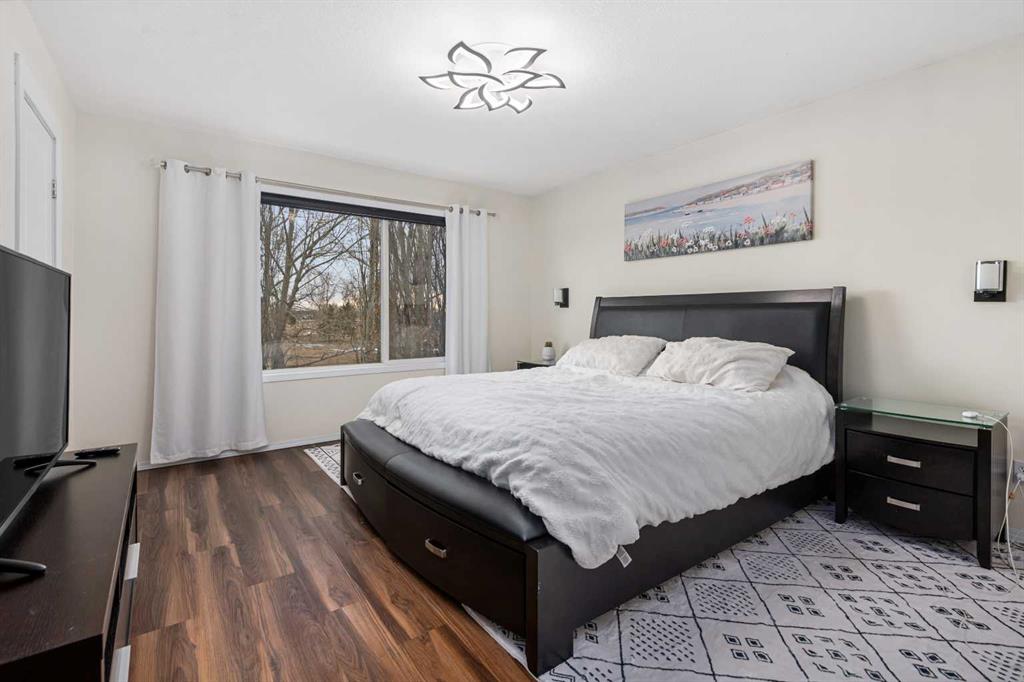 Upstairs, you’ll find three generously sized bedrooms, including a spacious primary retreat featuring a recently renovated ensuite and a custom walk-in closet by California Closets. The second level has been updated with modern vinyl plank flooring, adding a sleek and contemporary touch.