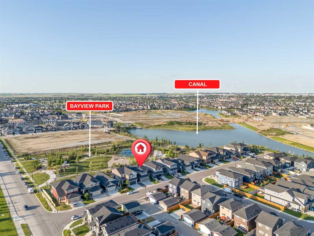 Welcome to this exceptional 30 ft wide former showhome, backing directly onto the scenic Bayview Park, in a vibrant community featuring a tranquil canal system, expansive green spaces, and a future school just steps away. Thoughtfully designed and meticulously upgraded with over $150,000 in high-end finishes, this award-winning residence blends sophistication, comfort, and modern functionality.
