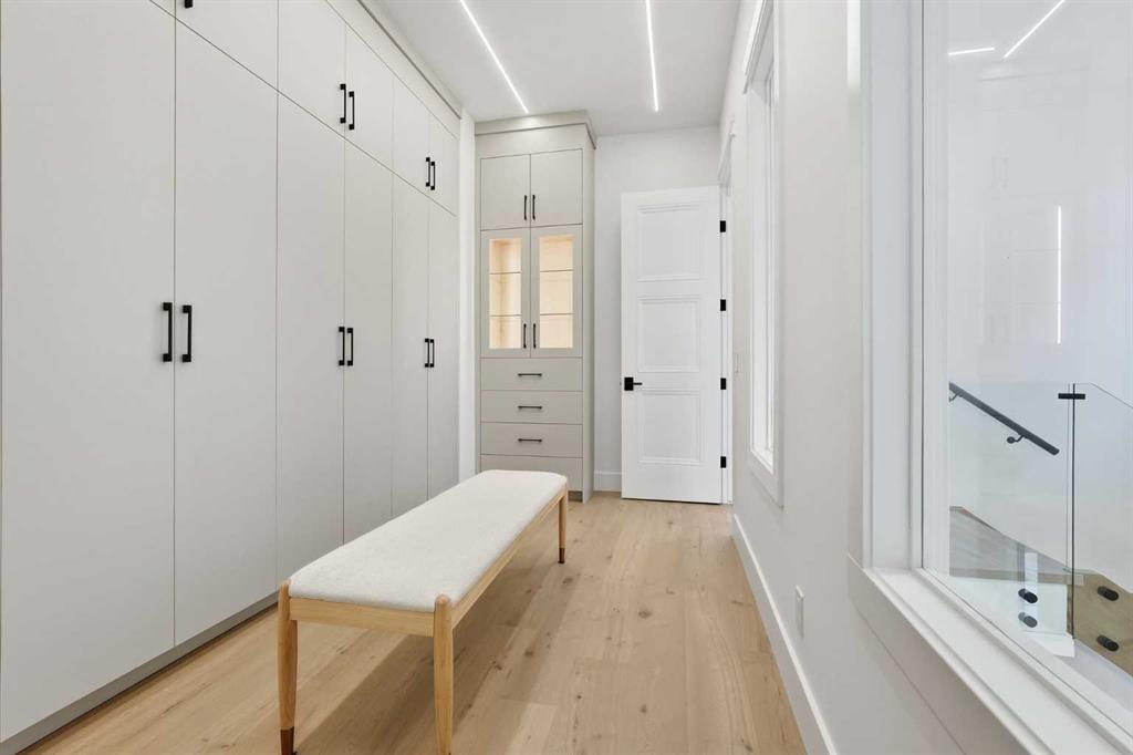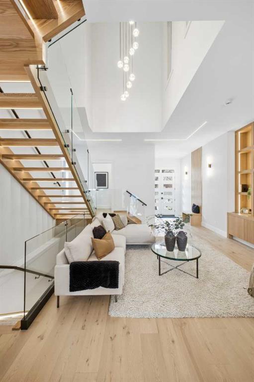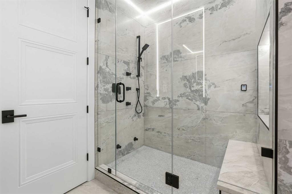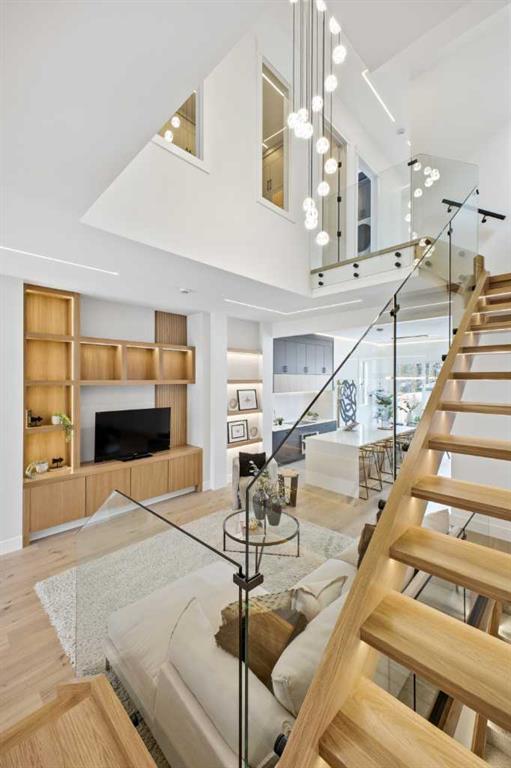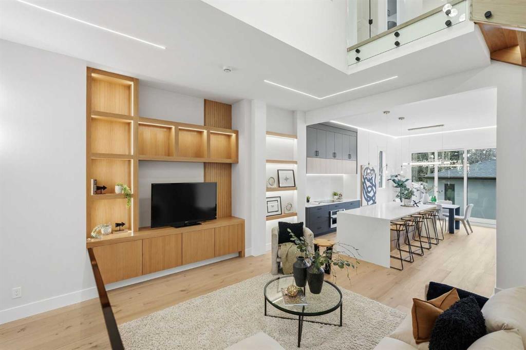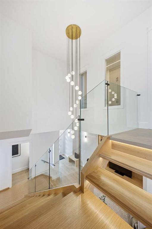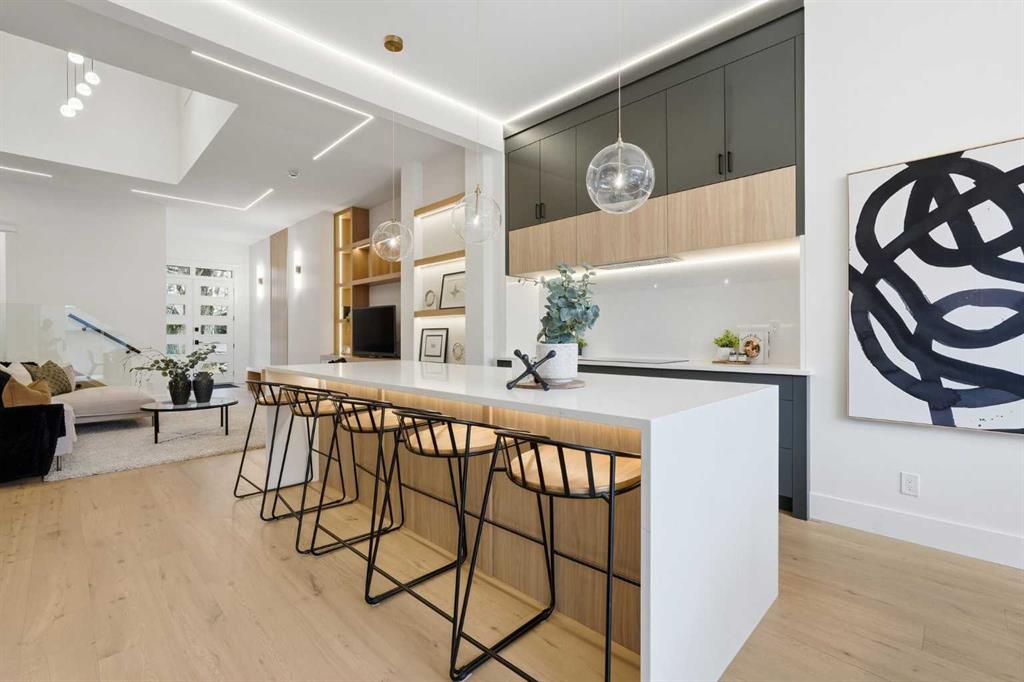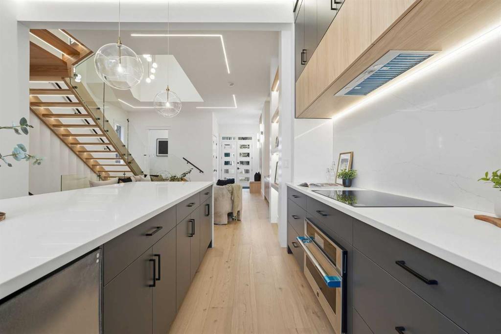 Stunning new home with full Smart Home capability, built by Libra Homes situated on a 27.6’x120’ lot in the heart of North Glenmore Park, offering 3+1 bedrooms & nearly 3000 sq ft of luxurious living space. The open & airy main level presents wide plank hardwood floors, lofty ceilings & stylish light fixtures, showcasing a spacious living room with built-ins that seamlessly transitions into the unique dual style kitchen that’s perfect for the entertainer & tastefully finished with quartz counter tops, island/eating bar & the convenience of a built-in oven, induction cooktop stove plus a gas stove with pot filler, 2 rangehoods, full sized fridge & a second smaller built-in paneled fridge with 2 drawers, making prep work & cooking for large gatherings effortless. A bright dining area provides ample space to host family & friends. A private office is located just off the foyer, perfect for a home office setup & a 2 piece powder room completes the main level. Ascend the open riser staircase to the second level that hosts 3 bedrooms, a 5 piece main bath & a well-designed laundry room with sink & storage. The primary retreat boasts a to-die-for walk-in closet & opulent 5 piece ensuite with dual sinks, relaxing freestanding soaker tub & oversized glass enclosed shower. Basement development lends itself to game or movie night, featuring a family/media room with built-in entertainment centre, cozy fireplace, built-in speakers & wet bar with plenty of room for a second seating area. A fourth bedroom & 3 piece bath with rejuvenating steam shower are the finishing touches to the basement. Other notable features, roughed-in A/C, LED lighting throughout, large back deck & double detached garage with enough space to park a larger vehicle. The location is incredibly convenient, close to Glenmore Athletic Park, Lakeview & Earl Grey Golf Clubs, schools, shopping, public transit & effortless access to Glenmore & Crowchild Trails.