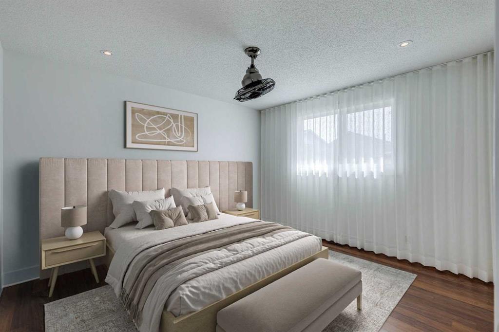 The bright and airy family room, flooded with natural light from large windows with designer floor-to-ceiling treatments, flows into a spacious dining area. The walk-through kitchen showcases a subway tile backsplash, updated appliances, a silgranit sink, and dimmer-controlled pot lighting. The primary bedroom easily accommodates a king-sized bed, while two additional bedrooms are perfect for family or guests. A fully renovated 4-piece bathroom with a soaker tub and modern fixtures completes the main floor. The partially finished basement provides a bonus room, ideal for an office or guest space. The rest of the basement is unspoiled, offering a blank canvas for your imagination. With a separate entrance and zoning for a legal basement suite, this space is perfect for investors, multi-generational living, or those seeking an income opportunity. Outside, the oversized lot is a rare find, offering both front and rear parking pads and plenty of room to build a massive garage. The fully fenced backyard, with mature landscaping and garden beds, is a private oasis, while the charming front and side yards provide additional space for a private patio. Conveniently located within walking distance of schools, parks, and amenities, with easy access to Stoney Trail, this home is an incredible value. Don't miss the 3D Virtual Open House Tour, Upgrade List, and Floorplan for a closer look.