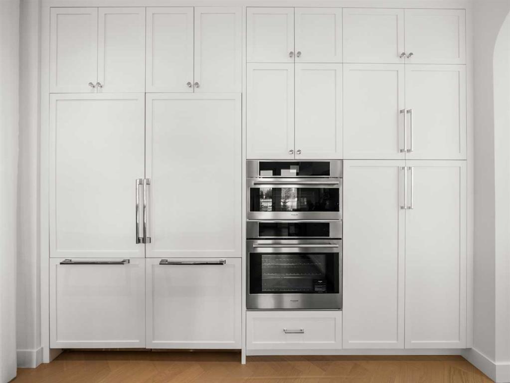 The chef-inspired kitchen is a true showpiece, boasting an oversized island, Brazilian porcelain countertops, custom cabinetry, and Italian Fulgor Milano appliances. A fully equipped butler’s pantry adds functionality and extra storage, while the adjoining mudroom connects to a triple attached garage designed for convenience and versatility.