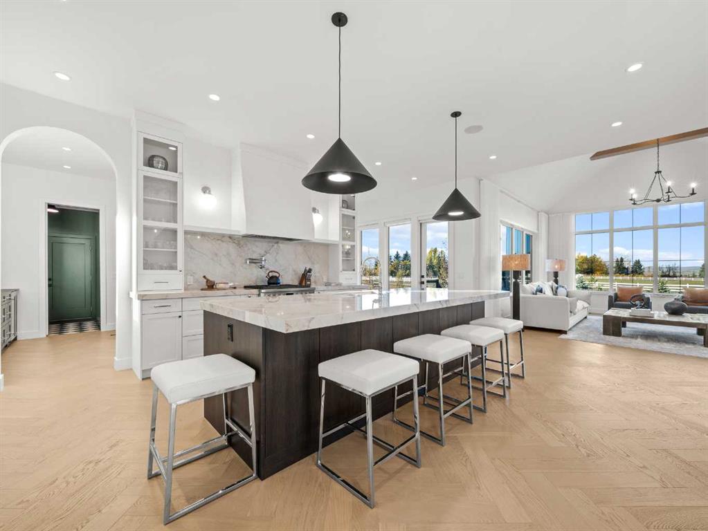 Nestled in the rolling landscapes just outside Southwest Calgary, this stunning custom-built luxury estate offers the perfect balance between serene country living and urban convenience. Located on a 2.4-acre private lot in a quiet cul-de-sac surrounded by other executive homes, this brand-new residence combines timeless craftsmanship, elegant design, and modern functionality, just 3 minutes from Spruce Meadows and 30 minutes from downtown Calgary.