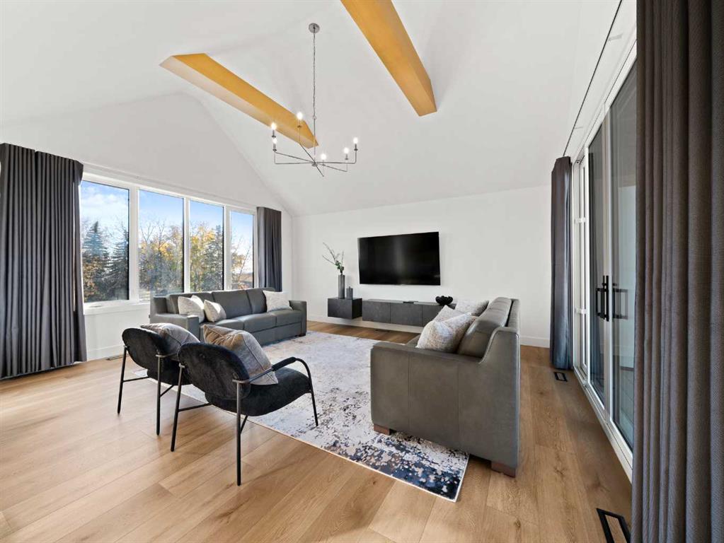 With over 5,500 sq. ft. of finished living space, this home was built with meticulous attention to detail. Step inside to discover a bright, open layout filled with natural light, soaring ceilings, and elegant arched doorways that bring classic charm into the modern design. The main living area features large picture windows with mountain views, a beautiful fireplace centrepiece, and seamless flow into the dining area and spacious terrace, perfect for entertaining or relaxing while enjoying the peaceful scenery.