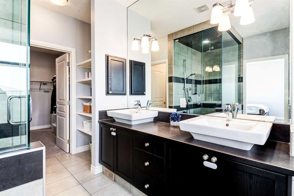 Located in the heart of Mahogany, one of Calgary’s most desirable lake communities, this stunning 5-bedroom, 4-bathroom home offers 3,340 sq ft of beautifully designed living space and checks all the boxes: location, privacy, and amenities. Enjoy year-round access to the community lake, close proximity to Seton Hospital, the world’s largest YMCA, Calgary Public Library, shopping malls, restaurants, and an environmental reserve with walking paths just steps from your door. The open-concept main floor features a formal dining room, living room, gourmet kitchen with a walkthrough pantry, breakfast nook, and a mudroom leading to the attached double garage. Upstairs includes four spacious bedrooms, a home office/study area with two desks, and a laundry room with a sink, while the master suite boasts a large walk-in closet and a luxurious 5-piece ensuite. One bedroom even offers a private balcony with unobstructed views of the environmental reserve. The fully finished basement includes a fifth bedroom, a large rec room with a wet bar, an additional laundry hookup, and a bonus tiled room with rough-in plumbing — perfect for a dog wash or extra storage. The backyard backs onto a walking path for added privacy and has a playground right next door, making it ideal for families. Looking out any window on the south side of the house gives you perfect views of the environmental reserve. Walking and biking is so easy just steps away from the house. The recent upgrades are washer and dryer( 2022), Air conditioner(2020), Hot water tank( 2025) Water Softener(2020). With access to excellent schools including Divine Mercy (Catholic K–6), Mahogany School (Public K–6), and a future public middle school (Grades 5–9), this home truly has it all. Book your showing today before it’s gone!