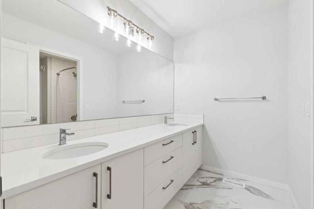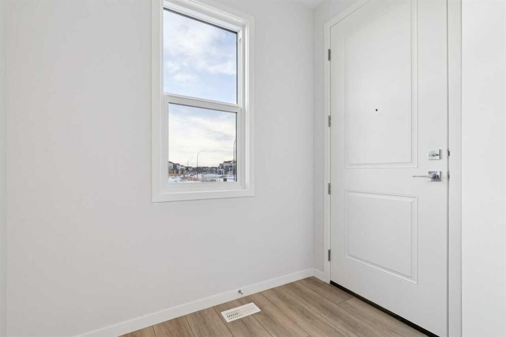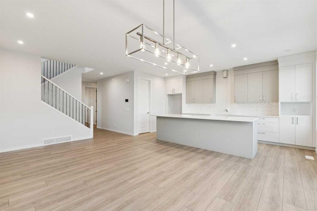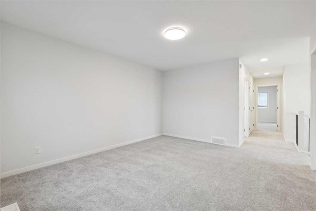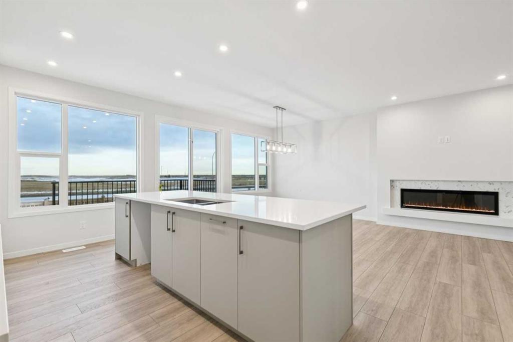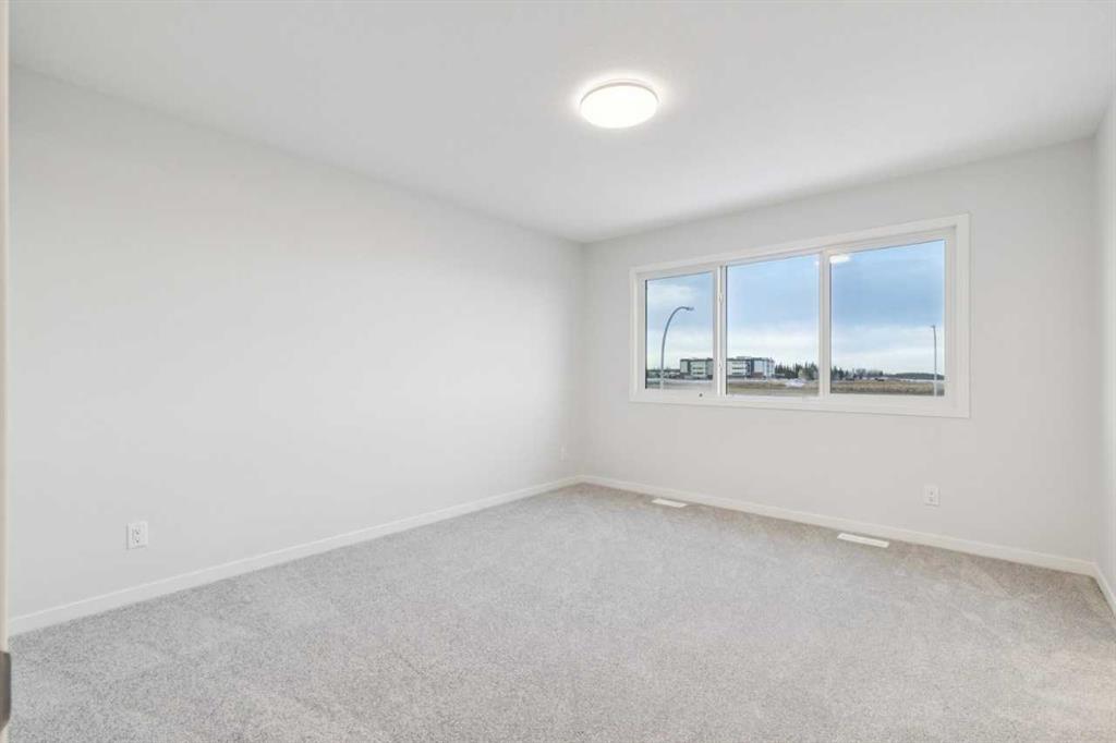 This family-focused home offers 2,127 sq. ft. above grade with four bedrooms, including a main-floor bedroom, three full bathrooms, and an upstairs bonus room. The open concept kitchen features an oversized island with extended eating ledge, tight-to-ceiling cabinets, large pantry, and generous counter space, flowing to the great room anchored by a feature fireplace. Upgraded railing throughout and added windows enhance natural light and the open feel. The rear deck provides indoor-outdoor connection, and the level lot with side entrance makes the basement ready for a future potential development. Additional features include 8 ft main floor doors, tankless water heater, appliance allowance, and full new home warranty.