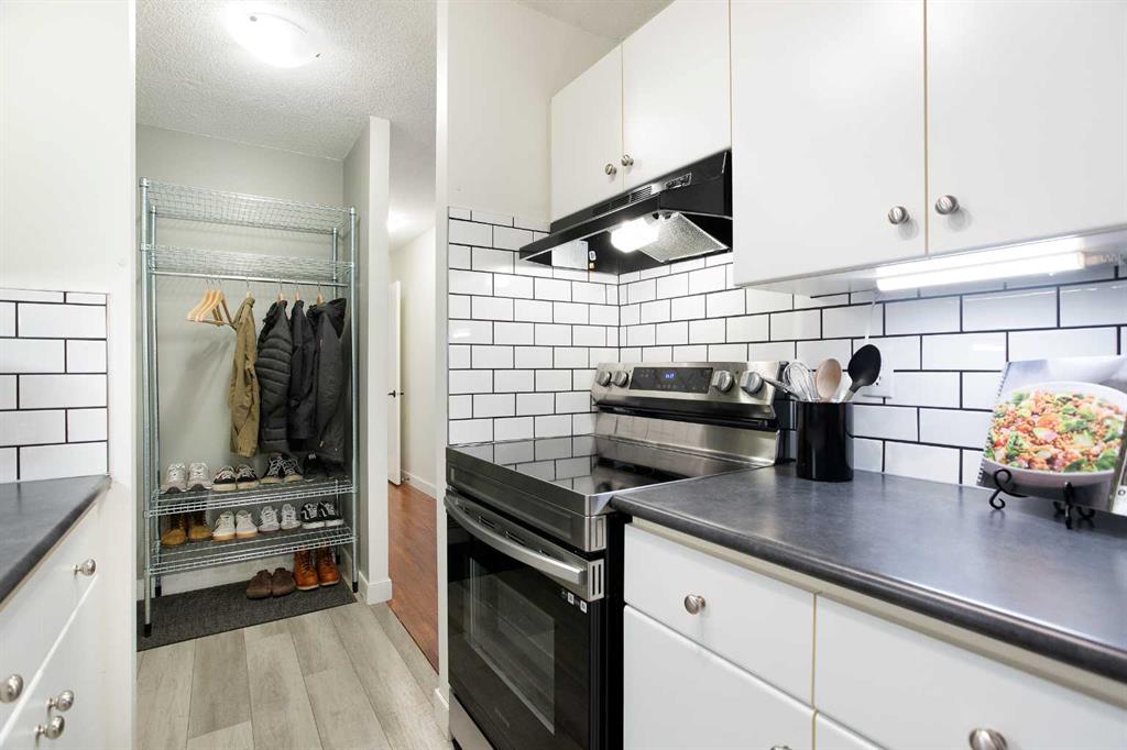 Welcome to Glenmore on the Parc in sought-after Glamorgan—80 Galbraith Drive SW, Unit 22C—a bright top-floor 2-bedroom, 1-bath condo offering 857 sq ft of comfortable, low-maintenance living. The east-facing exposure brings in beautiful morning light while maintaining a private-feeling outlook. The kitchen is a standout with newer countertops and flooring, crisp subway-tile backsplash, and updated appliances including a newer fridge and stove—perfect for everyday cooking in a clean, modern space.