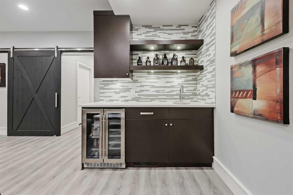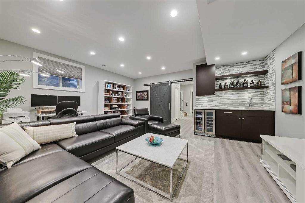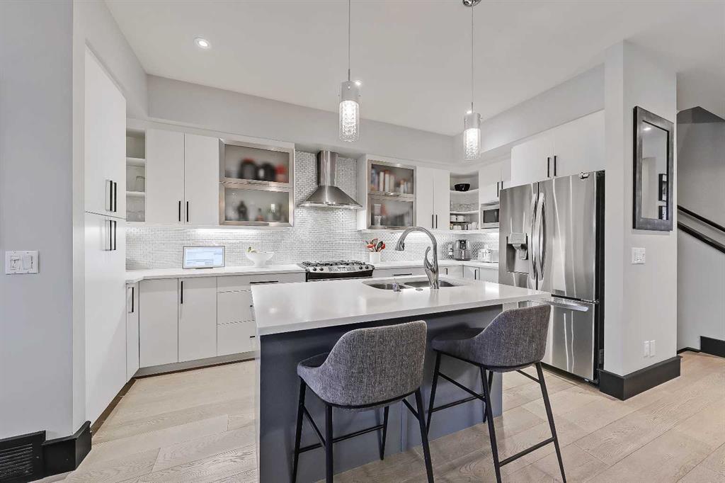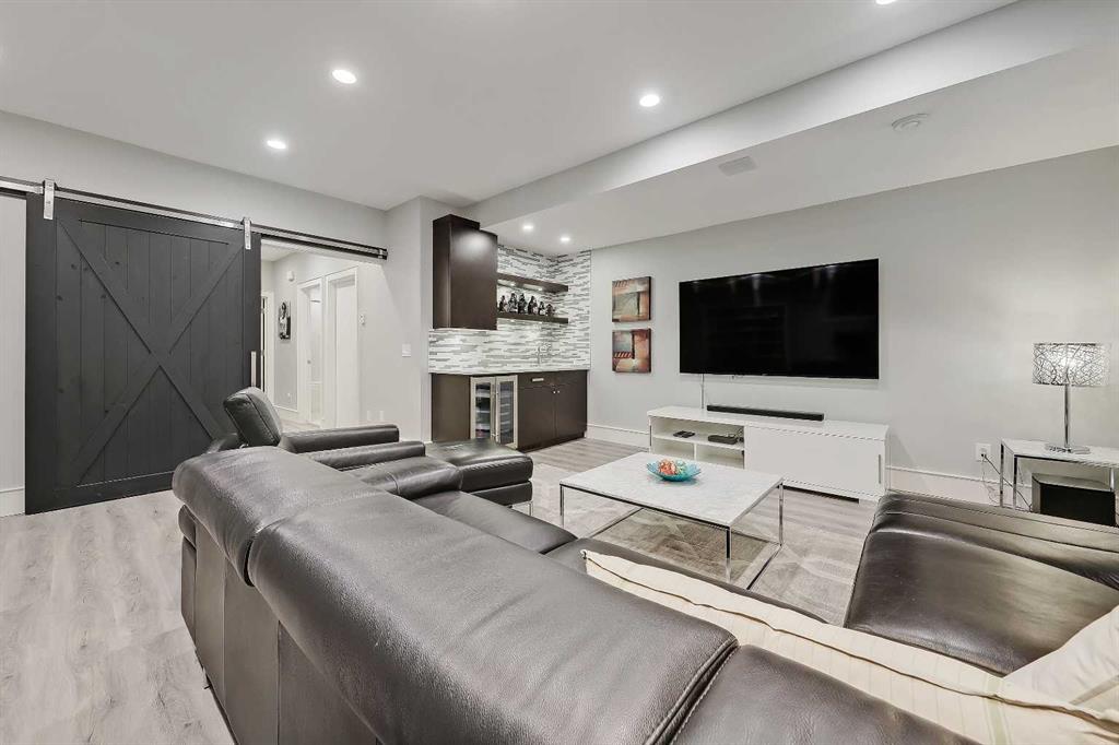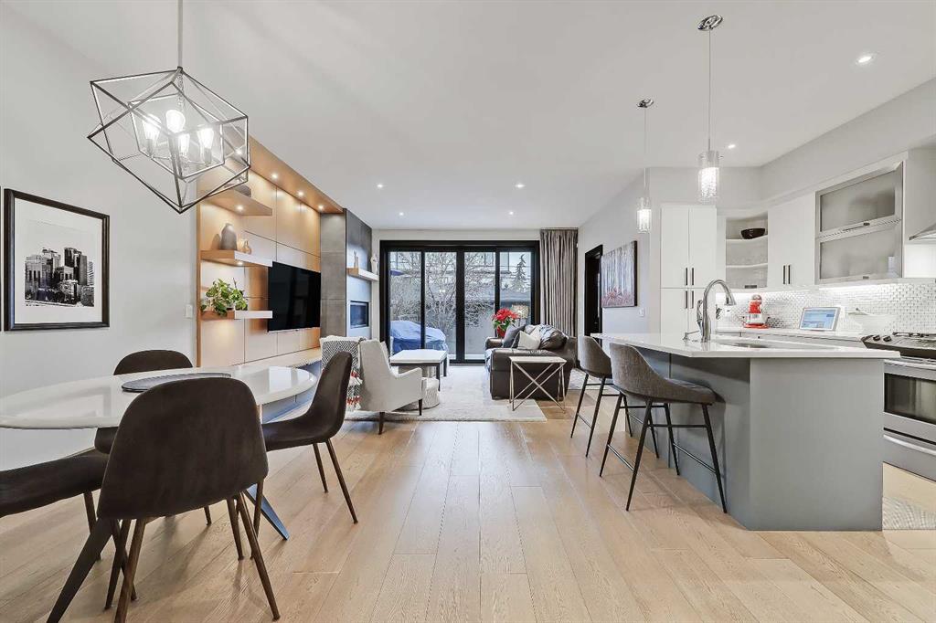 *VISIT MULTIMEDIA LINK FOR FULL DETAILS!* STYLE, COMFORT, AND LOCATION. Experience the best of Marda Loop living in this gorgeous semi-detached home located in the highly sought-after Richmond community. Just a quick 10-min walk away from shops, amenities, fitness studios, restaurants, and more! Families will appreciate the proximity to schools, parks, and playgrounds. Recently renovated and meticulously maintained, this home boasts over 2,700 sq ft of developed living space, 4 beds and 3.5 baths, a spacious basement, a private fenced backyard, and a double detached garage. This is a perfect opportunity for anyone seeking the best of inner-city living. Step inside through the oversized custom fibreglass front door into the welcoming formal front foyer with tiled flooring and a large closet. The main floor features engineered hardwood flooring throughout, leading to the bright formal dining room, which offers plenty of room for a full furniture arrangement. The modern kitchen features ample cabinetry and counter space, quartz counters, and a central island with bar seating, dual basin stainless steel sinks with a garburator, and a full stainless steel appliance package. The adjacent dining nook with an accent stone wall is a great spot for casual meals. The expansive living room boasts a custom built-in entertainment center with display shelves and pull-out drawers, and a tiled gas fireplace. High-end Pella glass sliding doors lead to the rear deck and backyard. Just off the living room is a convenient tiled mudroom with a pocket door, built-in storage, hooks and access to the backyard. Neatly tucked away, a 2pc powder room with tiled flooring completes the main floor. The upper floor showcases an impressive primary bedroom with large windows, a private balcony, a walk-in closet, and a luxurious 5pc ensuite. The ensuite features a quartz vanity with dual sinks and storage, a drop-in soaker tub with a handheld shower wand and tile surround, and a fully tiled stand-up shower. Two additional bedrooms with oversized windows and large closets, a main 4pc bathroom, and a tiled laundry room provide comfort and convenience. Downstairs, the fully developed basement features luxury vinyl flooring and in-floor heating throughout. A modern barn door opens into the massive rec room, which features a wet bar with a beverage fridge, quartz counters and tiled backsplash, and shelving. Down the hall, you’ll find a wine room with 10 mm glass enclosure, a guest bedroom with a walk-in closet, and a sleek 4pc bathroom. Outside, enjoy a composite deck, stone patio, grassy area, gas line for BBQs, and an insulated, drywalled, double-detached garage. Additional features include a high-efficiency furnace, central A/C, new roof (2024), new front door (2023), new main-floor sliding doors (2023), and a new fridge (2024). Don't miss out on this exceptional property that offers style, functionality, and an unbeatable location. Schedule your private showing today!