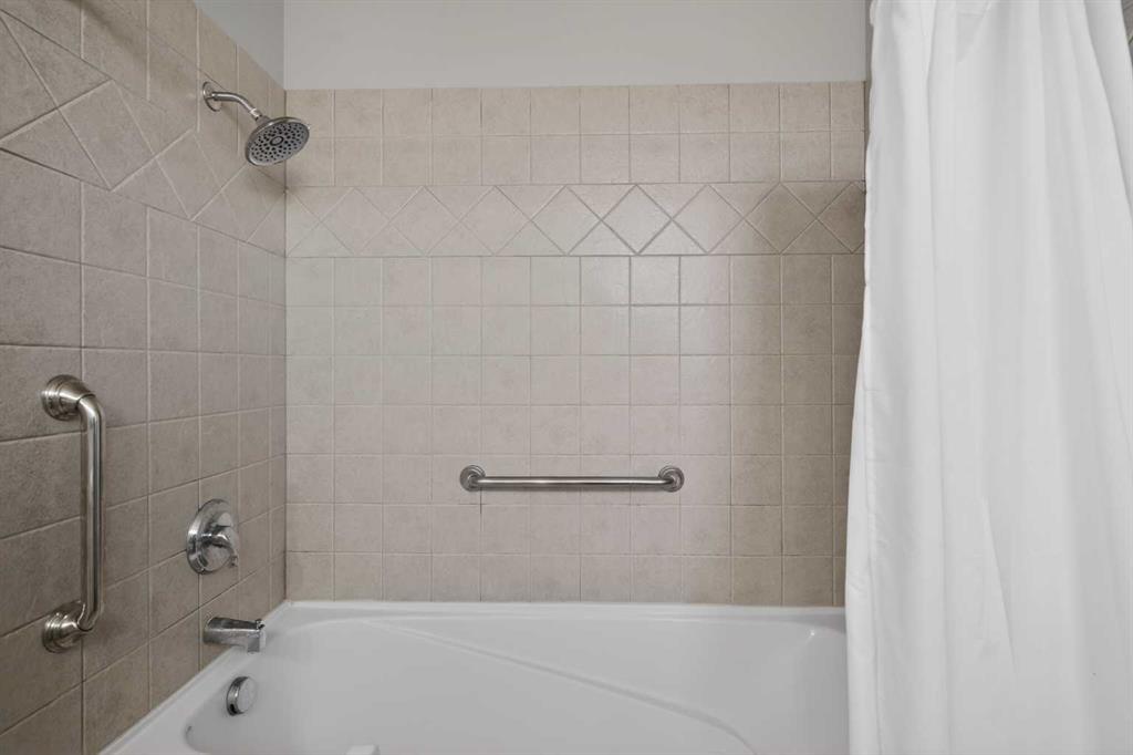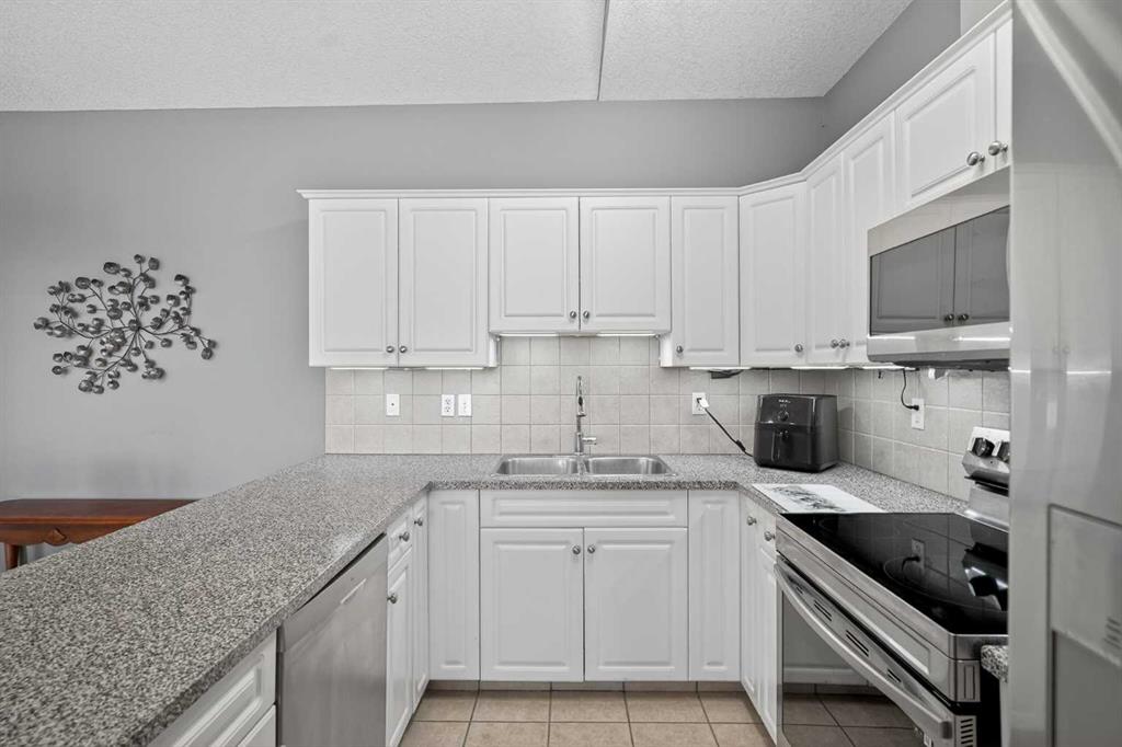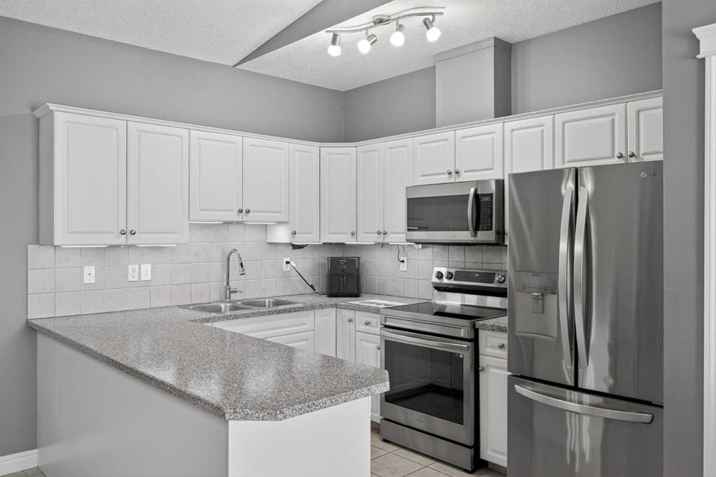 This spacious condo features two bedrooms and two full bathrooms. The vaulted ceilings in the living, dining, and kitchen areas make the space feel even larger and more inviting, while the kitchen offers plenty of white cabinetry. The oversized primary bedroom is extra bright with corner windows and includes a walk-through closet leading to a private ensuite with a window. The second bedroom is also generous in size and located next to another full 4-piece bathroom - good for guests, a roommate, or a home office.