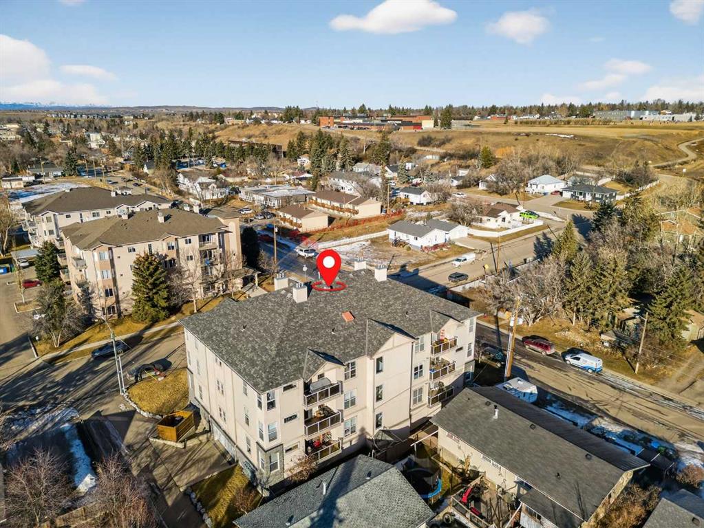 A rare find - top-floor corner unit with vaulted ceilings, offering 1066.71 sq ft of bright living space in the heart of downtown Heritage Okotoks.
