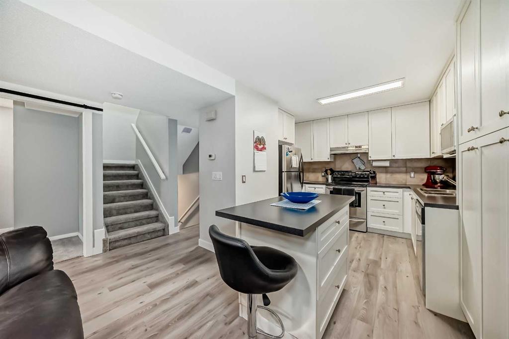 This fully renovated 3 bed/1 bath pet friendly stacked townhouse in a quiet complex in Forest Heights is a must see! The open plan main floor features updated luxury vinyl plank flooring throughout. The large newer renovated kitchen (2020) features full height white cabinetry, large pantry, good sized island and plenty of storage. The open concept living & dining space are great for entertaining family & friends. The first bedroom is off the main living area & features a glass door allowing in loads of light. The balcony overlooks the serene common area of the complex, perfect for relaxing on warm summer nights. The laundry/utility room has a new stacked washer/dryer, completing the main floor. Upstairs you'll find a large primary bedroom featuring a large custom built in wardrobe. The good sized third bedroom features a large walk in closet. The 4 pc bath has been fully renovated (2021) with a large white vanity featuring tons of storage & soaking tub/shower combo. if storage is your thing the large custom built in cabinetry linen closet, with secret drawers as well as another good sized storage room for all your extra items! Other upgrades throughout include brand new carpet in the bedrooms & stairwells, new solid core doors throughout and new paint., as well as a new roof (2024). The quiet complex features plenty of green space and is close to Marlborough Mall, Peter Lougheed hospital, schools, playgrounds, recreation facilities and is centrally located for easy access to Memorial Dr & Deerfoot Trail, making getting downtown & around the city a breeze. Book your showing today!