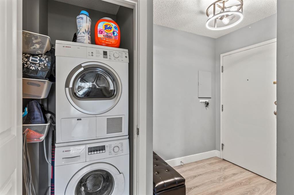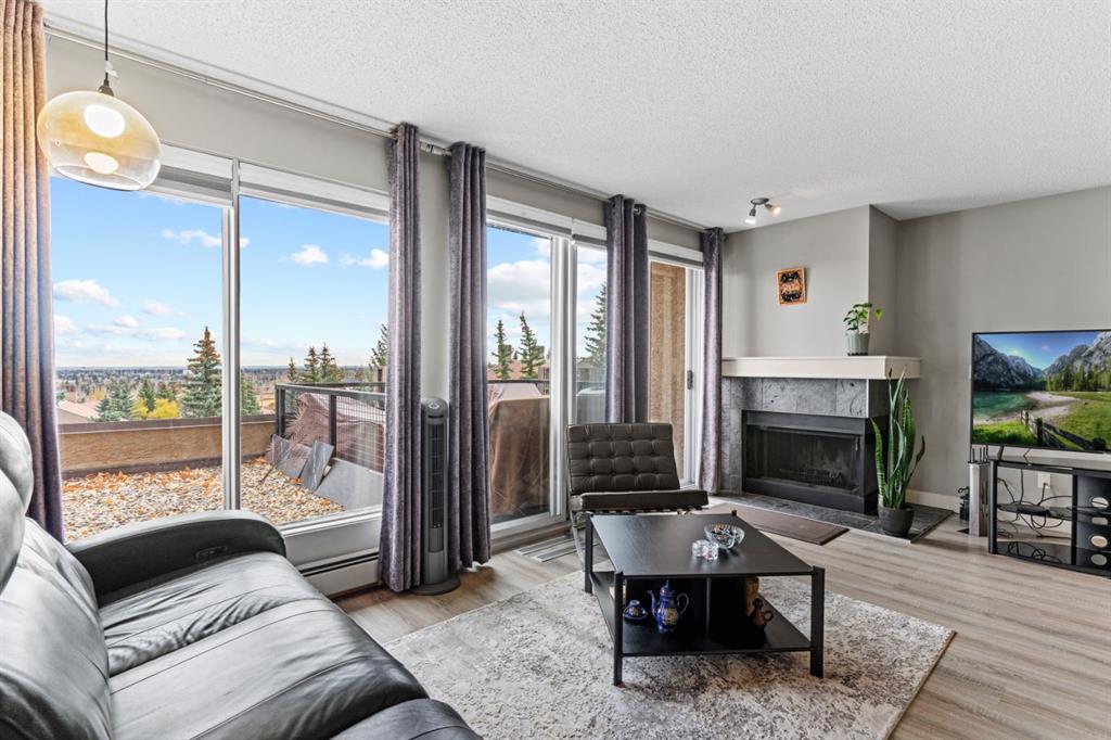 Welcome to “The News” – one of Calgary’s most sought-after complexes, nestled in the desirable community of Patterson. This BEAUTIFULLY UPDATED multi-level condo offers the perfect blend of COMFORT, FUNCTIONALITY, AND STYLE, - complete with stunning PANORAMIC CITY VIEWS. Inside, you’ll find 2 SPACIOUS BEDROOMS and 2 FULL BATHROOMS, thoughtfully designed across an OPEN-CONCEPT floor plan that’s bright and inviting. The MODERN KITCHEN features rich dark wood cabinetry, GRANITE countertops, STAINLESS STEEL appliances, and stylish pendant lighting — ideal for both everyday living and entertaining. The breakfast bar opens seamlessly into the generous living and dining areas, enhanced by LARGE WINDOWS that fill the home with natural light. Unwind in the cozy living room beside the wood-burning FIREPLACE, or step onto your PRIVATE BALCONY to enjoy skyline and treetop views. Both bedrooms are generously sized with ample closet space and offer access to a SERENE LOWER PATIO surrounded by greenery — a perfect outdoor retreat. Additional highlights include UPDATED FLOORING throughout, a FULLY RENOVATED bathroom with modern finishes, IN-SUITE laundry, and ASSIGNED HEATED UNDERGROUND PARKING, plus extra assigned STORAGE. Residents of The News enjoy exceptional ON-SITE AMENITIES including a fitness centre, indoor pool, hot tub, tennis court, and recreation room. Surrounded by mature trees and walking paths, this quiet and well-maintained complex offers quick access to downtown, the river, transit, parks, and shopping. Experience an unmatched lifestyle in one of Calgary’s most desirable locations – book your private showing today!