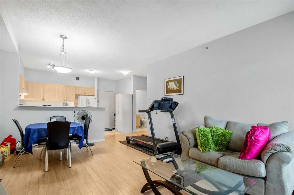 Move-in ready and showing excellent, this renovated top-floor unit is located in a secure building with elevator access and offers low condo fees that include all utilities. The open-concept layout features a spacious living room and kitchen, with sliding patio doors leading to a good-sized, southwest-facing covered balcony—ideal for relaxing or entertaining. The unit includes a large bedroom, in-suite laundry with a 2025 washer and dryer, assigned surface parking, and the added benefit of no unit below. Conveniently situated close to bus routes, schools, shopping, LRT, and the Genesis Centre. Very easy to show and a must-see property.