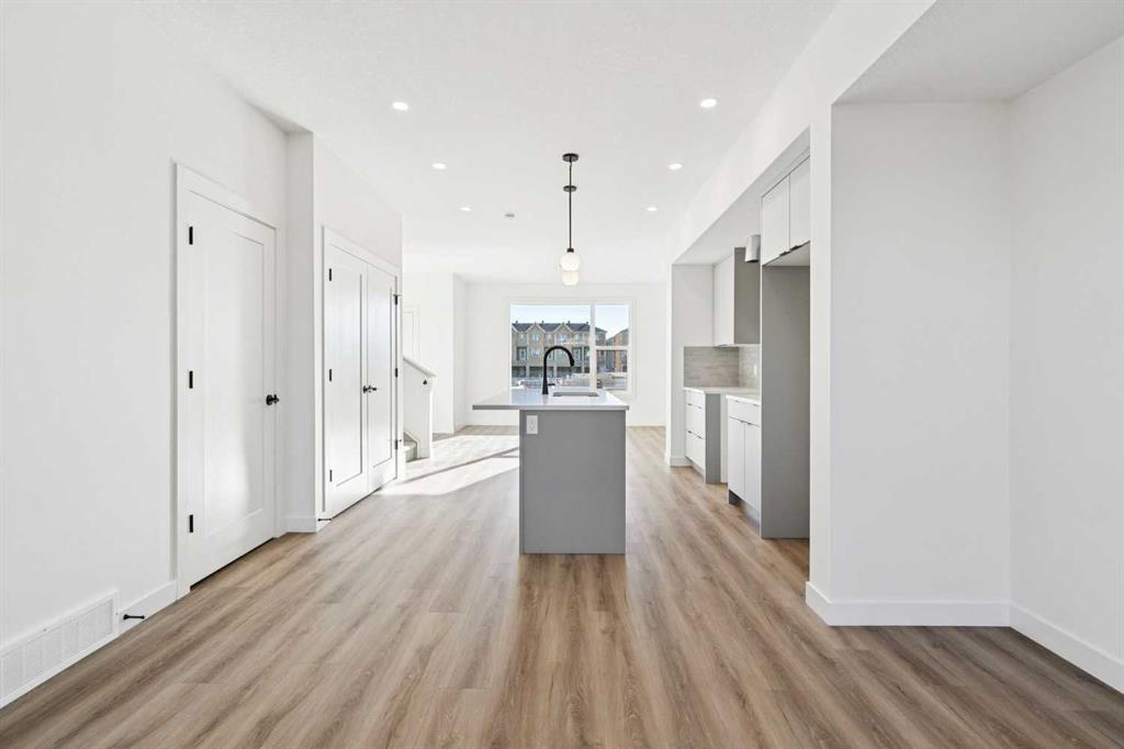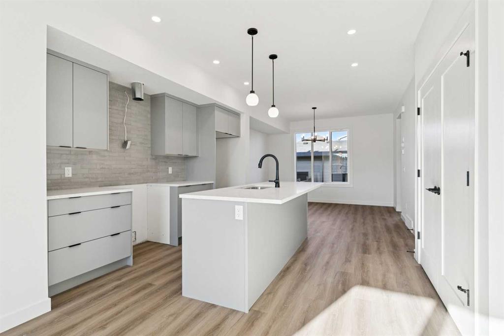 The "Irvine" by Fifth Avenue Homes provides an open plan, with a well-appointed kitchen and comfortable living space. The main floor features a huge great room, adjoining dining area, dream kitchen highlighted by an island with breakfast bar, Quartz countertops & custom tile backsplash, access to the large 10x10 deck & 2 pc bath. The upper level offers two spacious bedrooms, 4 pc bath, a gorgeous primary suite with walk-in closet + a 3 pc ensuite & laundry. Undeveloped lower level with loads of storage and mechanical. Double detached garage. High-end plumbing & lighting fixtures throughout! Fifth Avenue Homes is well known for above standard finishings & attention to detail both in design & workmanship. This listing has just been completed & is ready for occupancy – pick your possession & move right in. Just minutes away from East Hills Shopping Center (Costco, movie theatre, shops & restaurants), close to future CBE elementary school site & 10 minutes to downtown on the Max Purple transit. Belvedere offers a wonderful family lifestyle with parks, natural wetlands and pathways. Book a showing with your Realtor today!