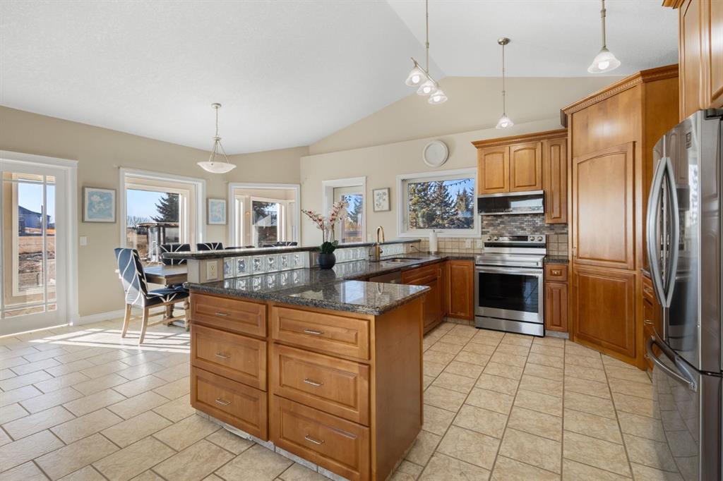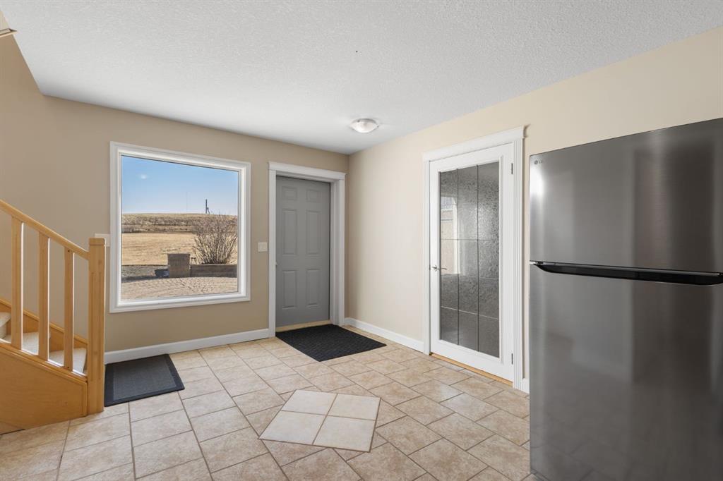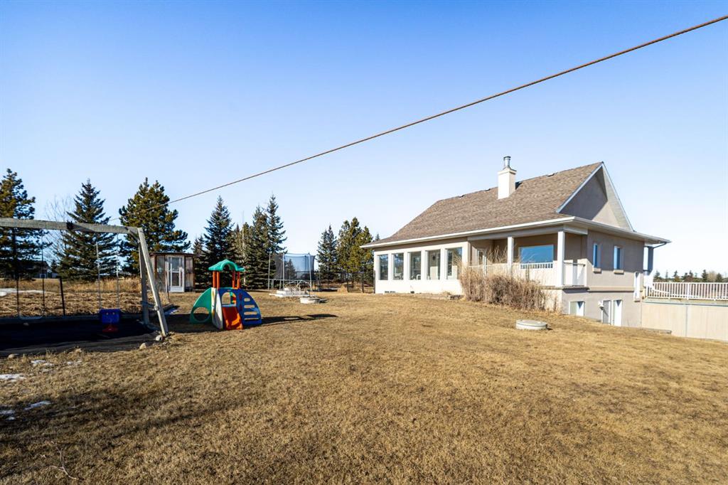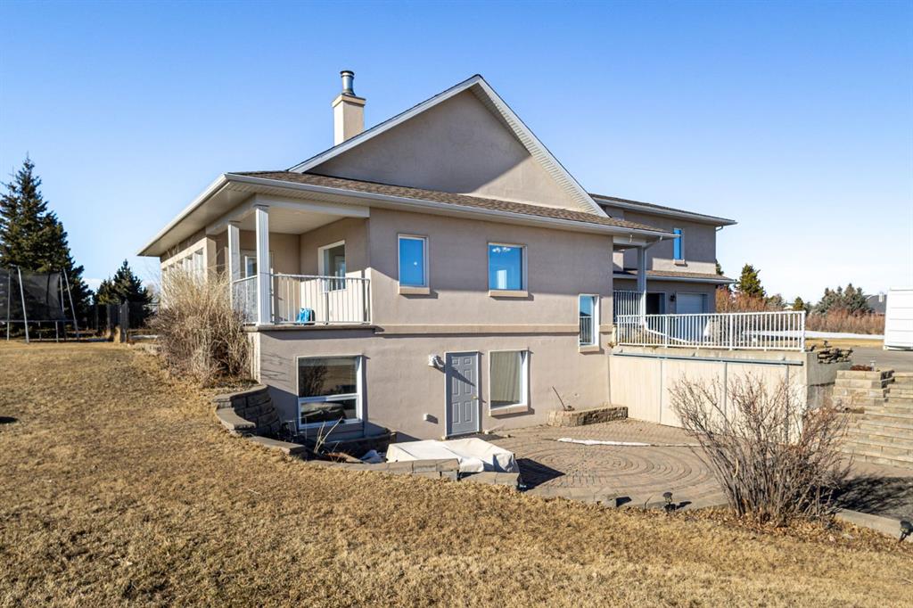 6 BEDROOMS | 2.37 ACRES | 1.5-STOREY | OVER 3,900 SQ FT | 5 MIN TO CROSSIRON & COSTCO Exceptional acreage living where country serenity meets city convenience. Set on 2.37 beautifully landscaped acres with sweeping views and outstanding privacy, this custom 1.5-storey walkout home offers a rare combination of space, quality, and proximity to Calgary, CrossIron Mills, and Costco. Offering over 3,900 sq ft of fully developed living space, the home features vaulted ceilings, a wide-open floor plan, heated flooring throughout, and expansive windows that flood the interior with natural light and capture the surrounding landscape. Built with high-efficiency ICF concrete construction to the roof, R-50 walls, R-50+ attic insulation, triple-pane Low-E windows, and a sunroom, this property delivers exceptional year-round comfort, durability, and energy efficiency. Comfort systems include hydronic in-floor heating, a forced-air fan coil system, and a radiant soapstone fireplace/wood stove, contributing to impressively low utility costs.