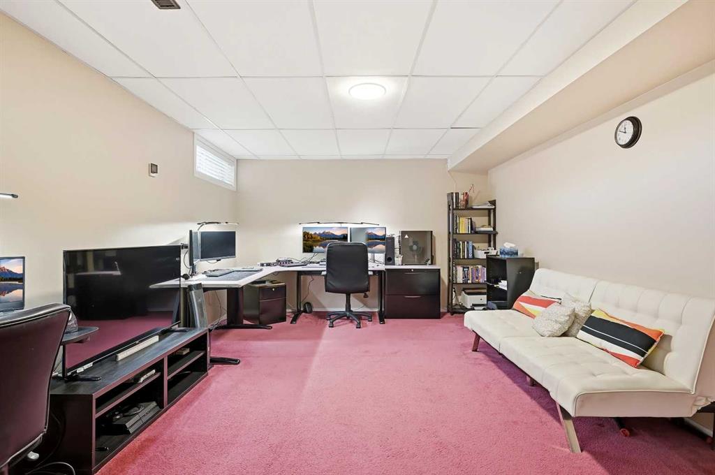 This well-maintained end-unit townhouse is located in a quiet Citadel townhouse complex, directly across from a park. The main level features a spacious kitchen with eating area, a bright living room with cozy gas fireplace, and access to a large rear deck and backyard, ideal for outdoor enjoyment. Upstairs offers a generous primary bedroom with walk-in closet and 4-piece ensuite, plus two additional bedrooms and another full bathroom. The finished basement includes a large recreation room, separate laundry area, and ample storage. Enjoy the convenience of a 22-ft single attached garage that comfortably fits an SUV, along with plenty of visitor parking. Original kitchen and baths have been well maintained, offering a move-in ready home with plenty of potential. An excellent opportunity in a desirable NW community.