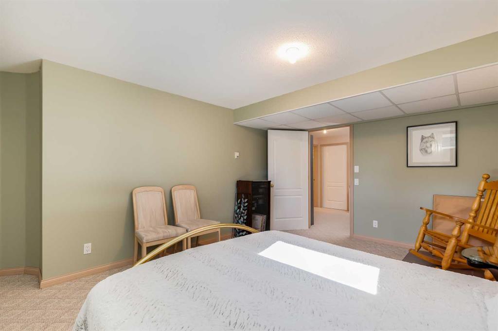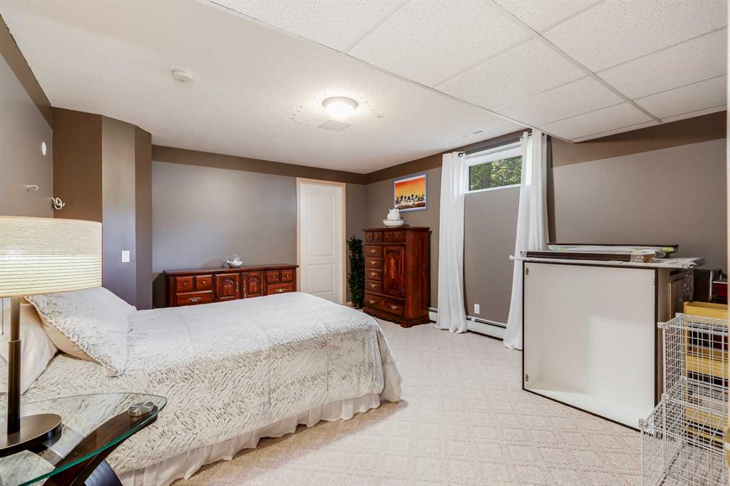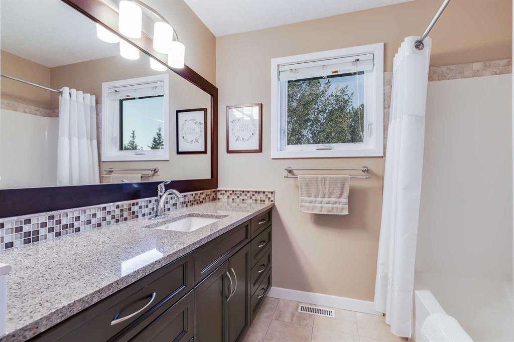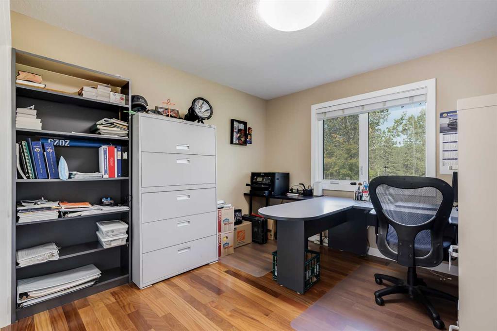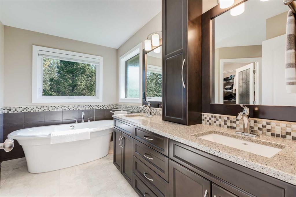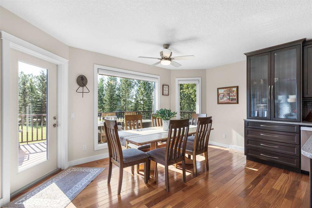 OPEN HOUSE: Sun., Feb 15: 1-3pm! Set among rolling hills just southeast of Airdrie, this exceptional 5 bed, 4 bath contemporary bungalow rests on a meticulously landscaped acreage designed for privacy and tranquility. Over 400 mature trees, thoughtfully planted more than two decades ago, now surround the home in a natural, park-like sanctuary. Renovated with intention and quality, the residence blends modern design with timeless appeal. Notable updates include: triple-pane windows, Brazilian teak hardwood flooring a chef-inspired kitchen with custom cabinetry, quartz countertops and premium stainless steel appliances. The main-floor primary suite offers a spa-like escape with double sinks, a freestanding soaker tub and a separate glass shower. The fully developed basement boasts a spacious recreational space, 2 large bedrooms, full bath and loads of storage. Completing the property are an attached, heated double garage, a high-producing, water well and a recently updated septic tank and field and no Poly-B, ensuring independence, efficiency, and peace of mind. All systems have been regularly maintained and well cared for. Acreage properties of this caliber are rarely available.