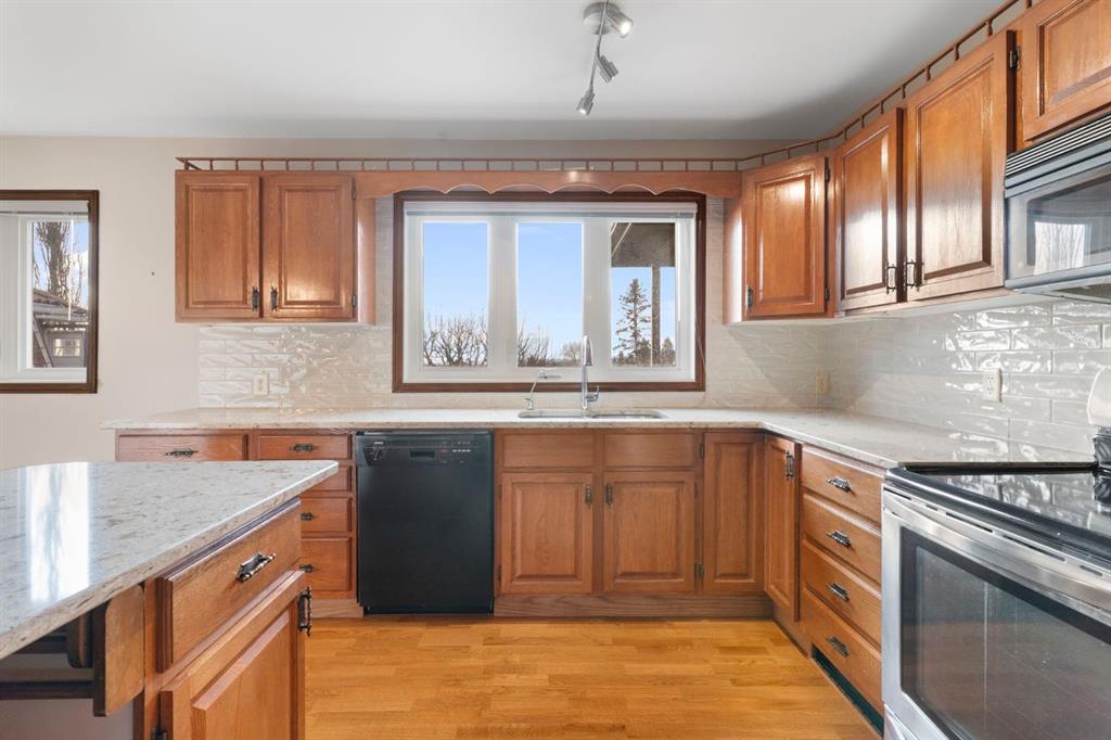Located in the highly sought-after community of Coach Hill Estates, this expansive family home sits on a generous 8200 sq. ft. lot offering downtown views and over 4300 sq. ft. of developed living space, including six bedrooms and four bathrooms. The exterior features a manicured front lawn, a long driveway, and a classic brick facade. Inside, the double front doors open to a proper foyer with hardwood floors and a stunning staircase. The main level includes a living room with large bay windows that flows into a formal dining room. The updated kitchen is equipped with quartz countertops and stainless steel appliances, overlooking a south-facing backyard. Adjacent to the kitchen is a spacious laundry and mudroom with access to the deck and sunroom. The main floor is completed by a family room featuring a wet bar and wood-burning fireplace, a powder room, and access to the attached heated double garage. The upper level hosts five bedrooms, including a primary suite with a walk-in closet, a three-piece ensuite, and a private sunroom with city views. A four-piece bathroom serves the secondary bedrooms. The walkout basement is flooded with natural light from south-facing windows and includes a sixth bedroom with its own three-piece ensuite. This level also features a recreational area with a second wood-burning fireplace, a dedicated indoor hot tub room with a sauna, a water fountain, a cold storage room and ample storage space. Outside you have a generous backyard that has been well taken care of with lush grass, a garden, trees, shed, inground sprinkler system and 3 year old fence. Significant upgrades include a new boiler (2022), roof replacement (2020), Solar panels and newer windows installed within the last four years (with three exceptions). The home also boasts 3/4-inch siding and solid-core interior doors throughout. Ideally located, this property is minutes from schools, shopping, major roadways, and Edworthy Park, with downtown Calgary just a 17-minute drive away.