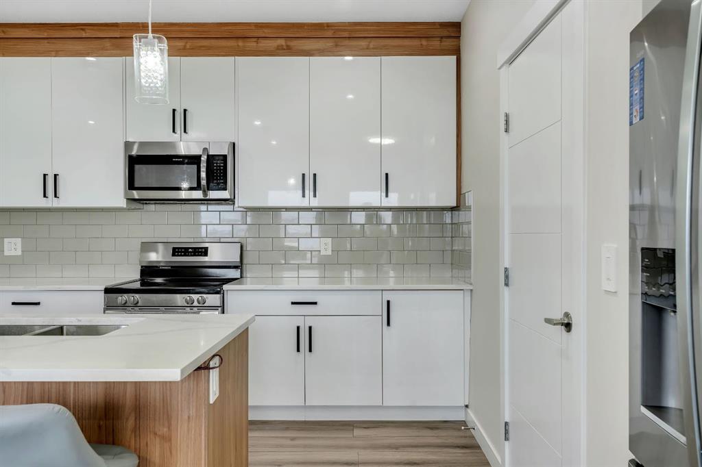 Finally… the wait is over! A rare opportunity in the sought-after community of Strathmore Lake Estates - this almost-new NO CONDO FEE townhome delivers lifestyle, upgrades, and built-in income potential in one smart package. WOW - watch the video tour! 3 BEDROOMS | 3.5 BATHROOMS | STUDIO BASEMENT (ILLEGAL SUITE) | FRONT DOUBLE ATTACHED GARAGE | LARGE WINDOWS | CHEF’S DREAM KITCHEN | POND VIEWS | BUILT IN 2023 | UPGRADED THROUGHOUT. From the moment you arrive, the modern curb appeal and premium pond location set this home apart offering scenic views, added privacy, and a peaceful atmosphere rarely found in townhome living. Step inside to a bright, open-concept main floor enhanced by luxury vinyl plank flooring, upgraded railings, and large windows that flood the space with natural light while showcasing peaceful pond views. The chef-inspired kitchen features quartz countertops, ceiling-height dual-tone cabinetry, upgraded appliances, and a generous island perfect for entertaining. The dining area flows seamlessly into a spacious living room where patio doors lead to your 10’ × 10’ deck and huge fenced backyard ideal for relaxing evenings or weekend gatherings. Upstairs, you’ll find three spacious bedrooms, convenient upper laundry and two full bathrooms finished with stylish ceramic tile. The primary suite is a true retreat, complete with a walk-in closet and private ensuite featuring dual sinks and a standing shower. The basement adds incredible flexibility with a studio illegal suite setup featuring a kitchen/wet bar and full bathroom - ideal for investors, extended family, or guests. Families will appreciate being within walking distance to schools, playgrounds, shopping, walking paths, ponds, and green space, with quick access to Highway 1 for an easy commute. Lifestyle + Location + Income Potential = Exceptional Value. Don’t miss your chance to own in one of Strathmore’s most desirable lake communities.