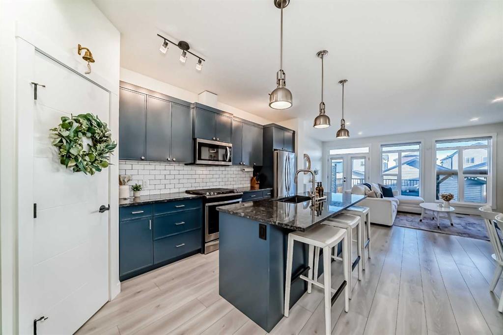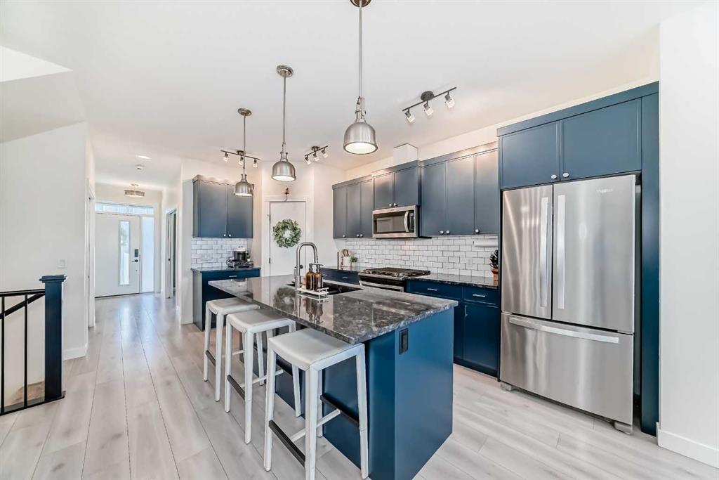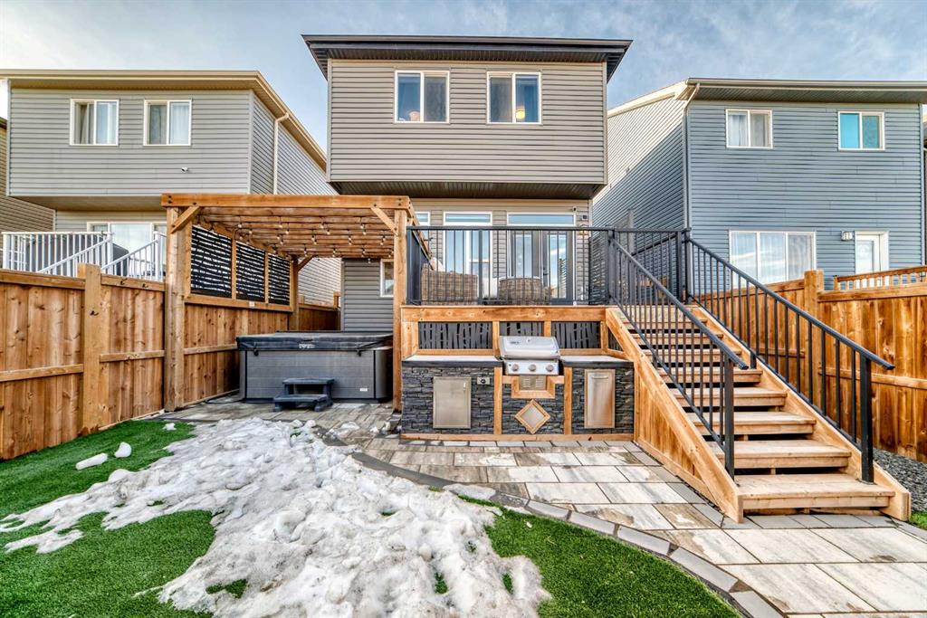 ** OPEN HOUSES - CANCELLED ** Welcome to this stunning, completely move-in ready home in the sought-after community of Chinook Gate. Meticulously maintained and beautifully finished, the pride of ownership is evident from the moment you step through the front door. A generous west-facing office/den offers the perfect work-from-home space, filled with natural light. The bright, open-concept main living area is both functional and stylish, featuring a beautiful kitchen with upgraded lighting, a large island, pantry, ample cupboard space and gas stove. Timeless blue cabinetry paired with grey stone countertops creates a warm yet sophisticated atmosphere. The east-facing living room is a true showpiece, highlighted by an electric fireplace with a shiplap feature wall, natural wood mantle, and custom built-in shelving. An entire wall of windows floods the space with morning light. Both the front and backyard have been thoughtfully landscaped with low-maintenance turf. The backyard is an entertainer’s dream, complete with a large deck, a built-in outdoor kitchen with BBQ, pergola and stone walkway — a space you’ll never want to leave. Upstairs, you’ll find a spacious bonus room and three bedrooms, including a large primary retreat featuring a 4 piece ensuite, a walk-in closet and incredible west-facing private balcony — the perfect place to enjoy your morning coffee. Convenient upper-floor laundry adds to the home’s thoughtful design. The fully finished basement expands your living space with a fourth bedroom, generous recreation area, full bathroom, and plenty of storage. Additional highlights include air conditioning for summer comfort and a double detached garage for secure parking. There is truly nothing missing in this exceptional home — simply move in and start making memories. Located in the vibrant community of Chinook Gate, residents enjoy year-round family events such as community BBQs, summer movie nights, and Easter egg hunts. Just a block from a park and minutes to Chinook Winds Park, schools (elementary through high school), and all amenities, this location offers the perfect blend of lifestyle and convenience.