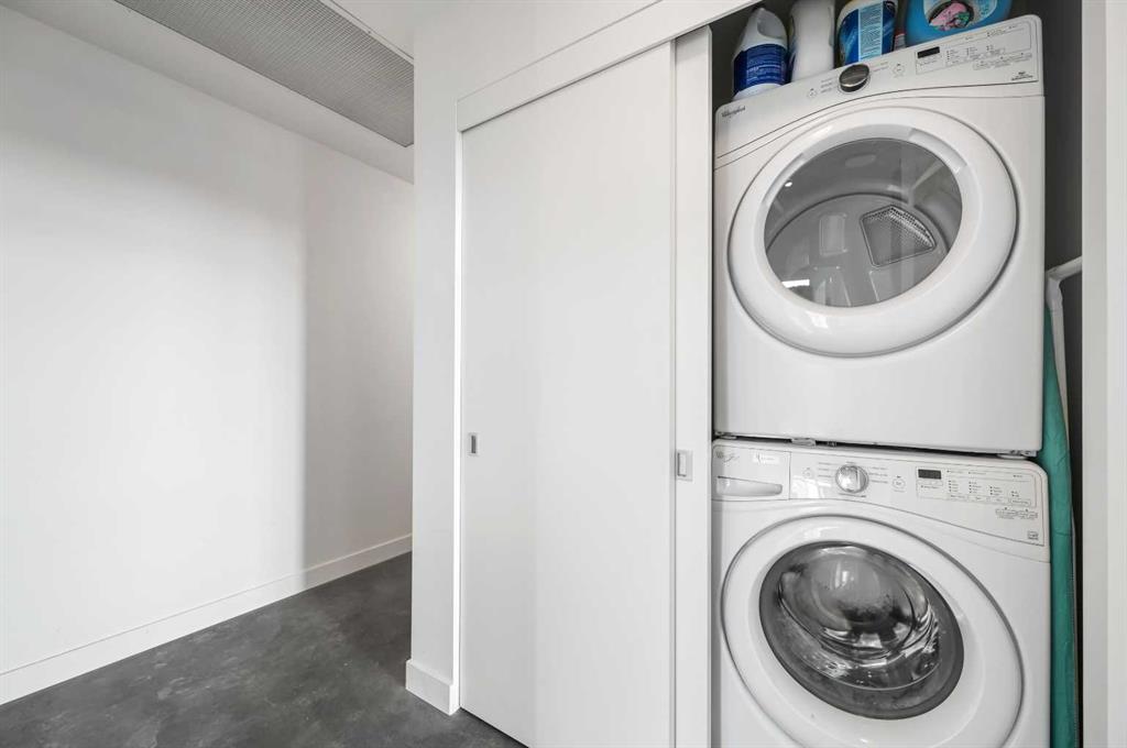 Welcome to this stunning 2-bedroom, ultra-modern corner condo offering breathtaking panoramic views and an unbeatable inner-city lifestyle. Designed with both style and functionality in mind, this bright and spacious home features 9-foot ceilings, floor-to-ceiling windows, and a spectacular balcony perfect for enjoying Calgary’s skyline and unforgettable sunsets. From the moment you enter, you’re greeted by unobstructed views of the Calgary Tower, Central Library, and Stampede Grounds, creating an instant wow factor. The open-concept layout is flooded with natural light and showcases contemporary finishes throughout, including a sleek kitchen, modern bathroom, and thoughtful design that maximizes both space and comfort. The southwest exposure enhances the airy feel, while the partially covered balcony allows for year-round enjoyment. Additional highlights include concrete construction for superior soundproofing, in-suite laundry, a spacious foyer, central storage closet, titled heated underground parking, and assigned storage. The building offers exceptional amenities, including a rooftop social lounge and patio ideal for watching Stampede fireworks or enjoying views of the Bow River and downtown skyline, as well as a bike storage room with repair station and a dedicated dog wash. Ideally located on a quiet, low-traffic street yet steps from downtown, transit, river pathways, shops, restaurants, and entertainment, this move-in-ready home delivers the perfect blend of modern living, walkability, and vibrant urban lifestyle.