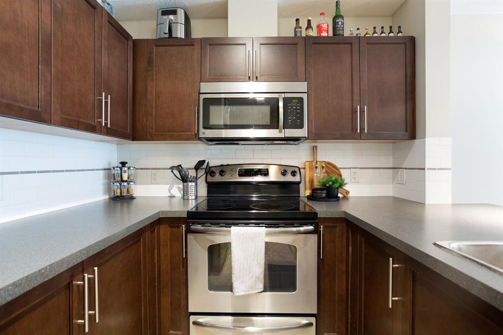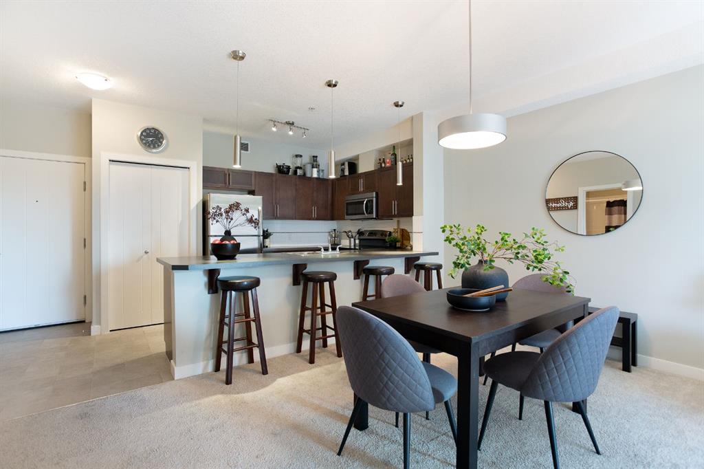 Experience the perfect harmony of modern sophistication and effortless living in this beautifully updated, south-facing sanctuary. Spanning a generous 847 square feet, this two-bedroom, two-bathroom condo is a masterclass in functional design, maximizing every inch to create an atmosphere that feels both expansive and intimate. Bathed in natural light from its coveted southern exposure, the open-concept layout invites you into a bright, airy living area that flows seamlessly onto a private, sun-drenched balcony—the ultimate setting for morning coffee or evening reflection. The heart of this residence is a chef-inspired kitchen that balances warmth with high-end style. Featuring rich walnut cabinetry, contemporary tiling, and a massive central island with seating for four, it serves as a premier hub for weekend entertaining or quiet weeknight meals. The floor plan is thoughtfully arranged with privacy as a priority; the primary suite acts as a true retreat, offering a large window that frames the sun and a dedicated three-piece ensuite. A spacious secondary bedroom and a full four-piece main bathroom provide ample room for guests, a home office, or a growing family, while the convenience of in-suite laundry ensures your daily routine remains streamlined. Beyond the walls of this stunning unit, the location on East Lake Boulevard is truly unparalleled. Imagine a vibrant community where your front door is situated merely steps from the premier amenities of Genesis Place. Whether you are heading to the gym, the pool, or the skating rink, world-class recreation is right at your fingertips. The lifestyle appeal continues with Bert Church High School, outdoor hockey rinks, tennis courts, and diverse shopping destinations all within easy walking distance. Meticulously maintained and entirely move-in ready, this modern residence offers an incredible opportunity for first-time buyers entering the market, downsizers seeking a simpler pace, or savvy investors eyeing a high-demand district. This isn’t just a condo; it’s a gateway to a convenient, active, and luminous future. Don’t allow this rare find to pass you by—come experience the charm of this exceptional property for yourself and schedule your private viewing today!