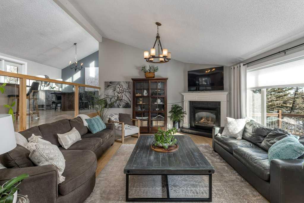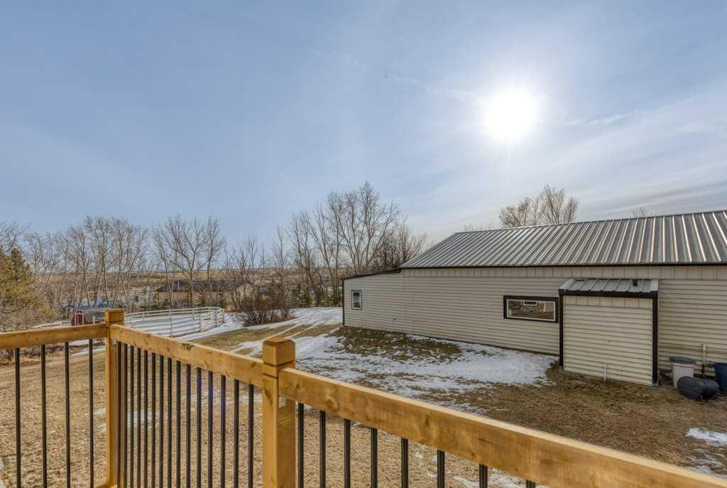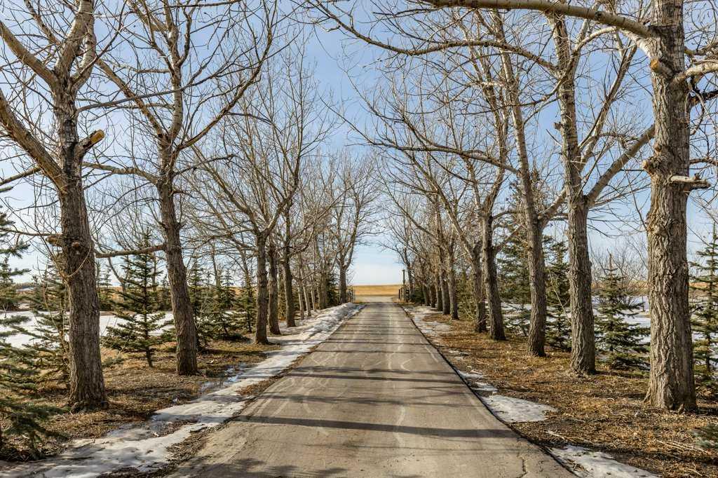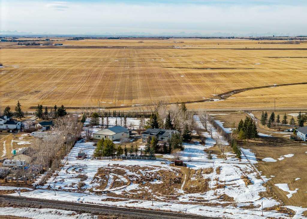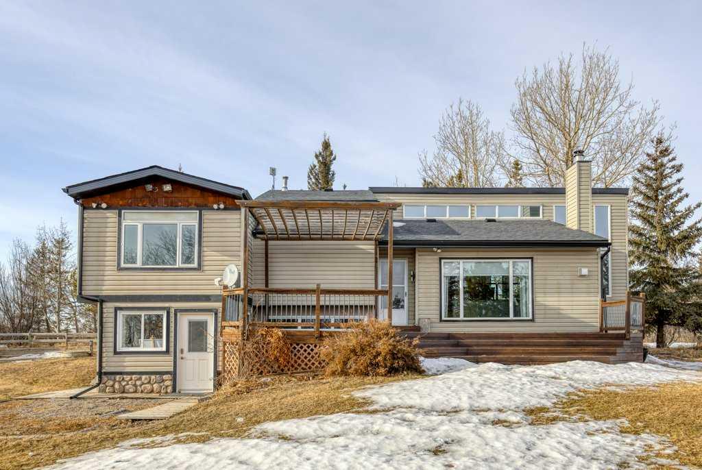 Experience the best of acreage living just minutes from Calgary city limits on this picturesque 4.28-acre property featuring a beautifully updated home full of character. The unique split-level design offers three bedrooms on the main level, including a spacious primary suite complete with a luxurious ensuite showcasing heated floors, a soaker tub, double sinks, and abundant built-in storage. Vaulted ceilings and hardwood flooring enhance the main living areas, while the sunken family room creates a warm and inviting space with a gas fireplace and direct access to the outdoors.
