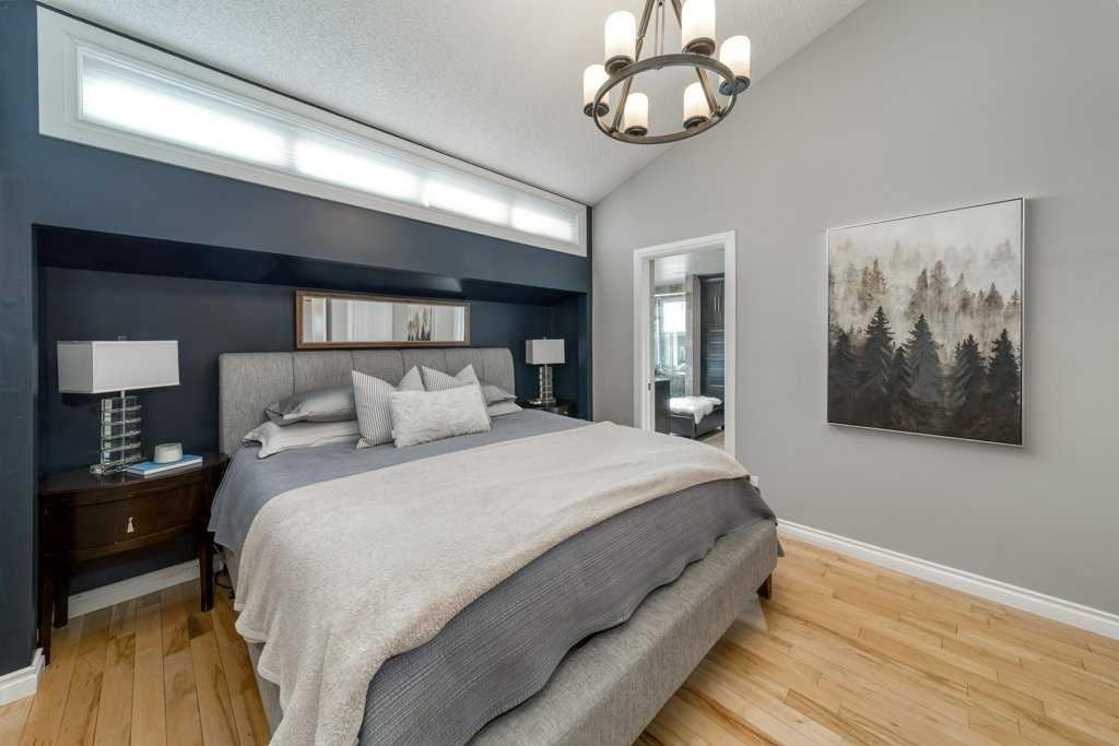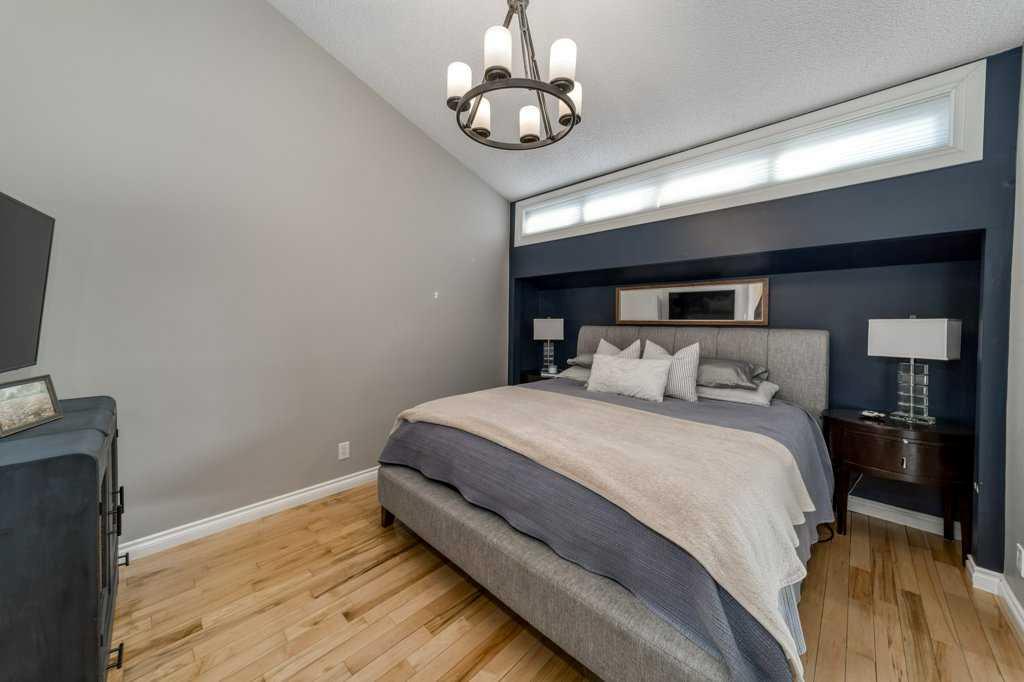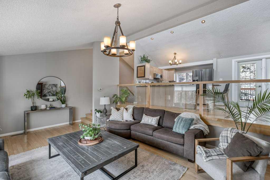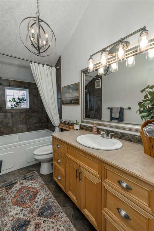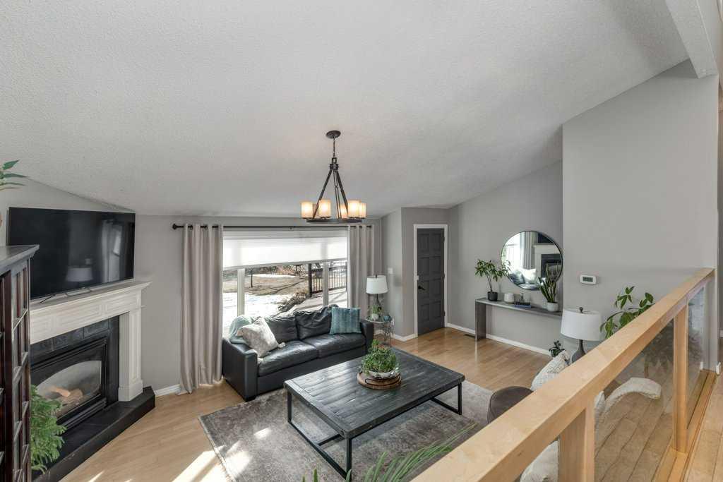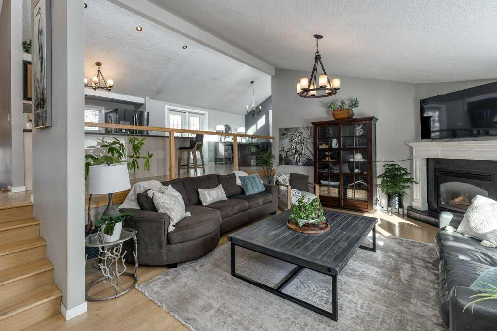 Experience the best of acreage living just minutes from Calgary city limits on this picturesque 4.28-acre property featuring a beautifully updated home full of character. The unique split-level design offers three bedrooms on the main level, including a spacious primary suite complete with a luxurious ensuite showcasing heated floors, a soaker tub, double sinks, and abundant built-in storage. Vaulted ceilings and hardwood flooring enhance the main living areas, while the sunken family room creates a warm and inviting space with a gas fireplace and direct access to the outdoors.