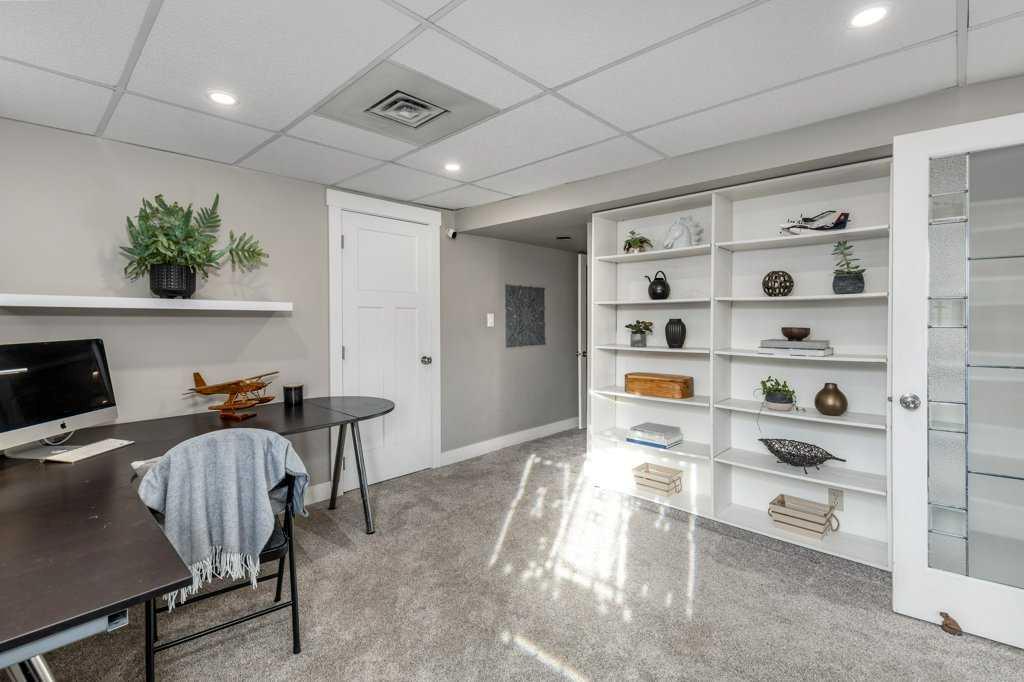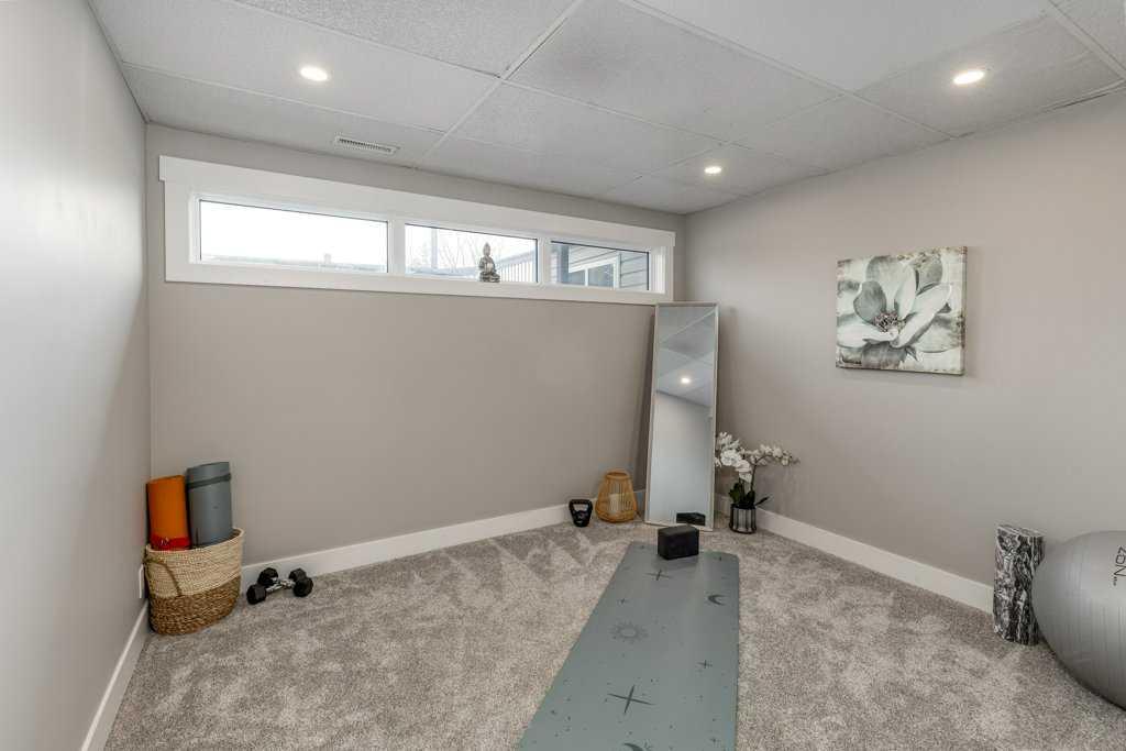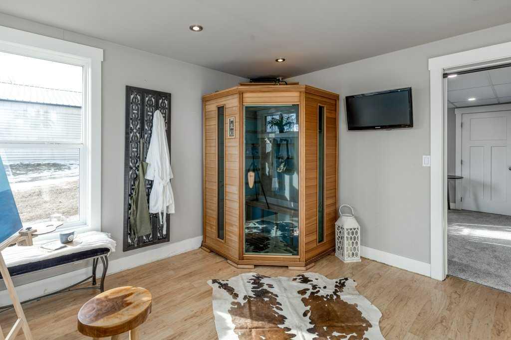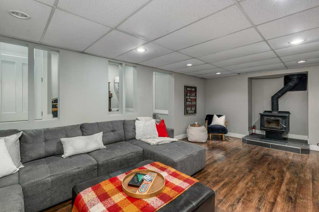 The lower level offers exceptional flexibility with a large flex room currently used as a home gym, office area, studio/sauna space, laundry, and a 3-piece bathroom. One level down, enjoy the ultimate family movie and recreation area complete with a cozy wood-burning stove—an ideal retreat for quiet evenings or family movie nights.