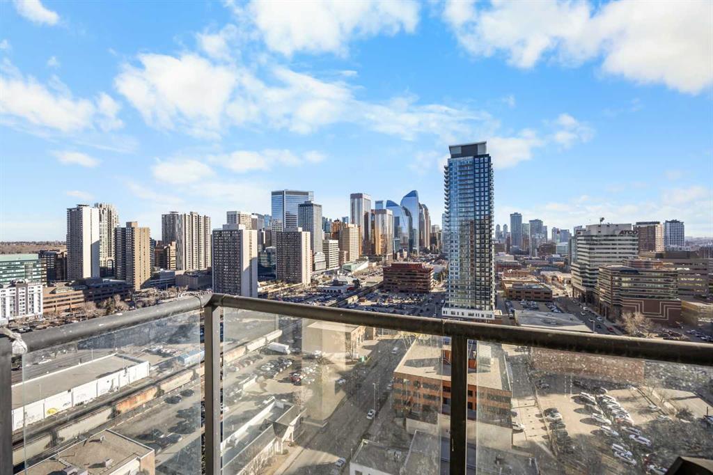 Welcome to this bright 1-bedroom apartment on the 19th floor in the heart of the Beltline! This well-designed unit offers 480 sq ft of functional living space with 9-foot ceilings and an open-concept layout. The functional Kitchen flows seamlessly into the sunny East-facing Living and Dining room combo, filled with natural light throughout the day. Vinyl plank flooring adds style and durability to the Living room, Dining area, and Bedroom. From the Living room, step out to the East-facing balcony with gas hookup, where you can enjoy stunning downtown views—perfect for your morning coffee or evening relaxation. The Primary bedroom provides comfortable space with 2 closets for ample storage. This unit is complete with 1 full bathroom, in-suite laundry, and a Titled underground parking stall. The condo fees cover all utilities—gas, water, and electricity—providing exceptional value for inner-city living. The well-managed Vantage Pointe building includes a fitness centre, bike storage, underground visitor parking, and 24-hour security. Living in the Beltline means having everything nearby: restaurants, grocery stores (Co-Op, Safeway & Community Natural Foods), schools, vibrant 17th Ave, and green spaces like Prince's Island Park. Just a short walk to the C-Train station and Bow River pathway, making it easy to get around whether you're commuting, cycling, or enjoying a quick commute to work in Downtown. Don't miss your chance to live in one of Calgary's most walkable neighborhoods!