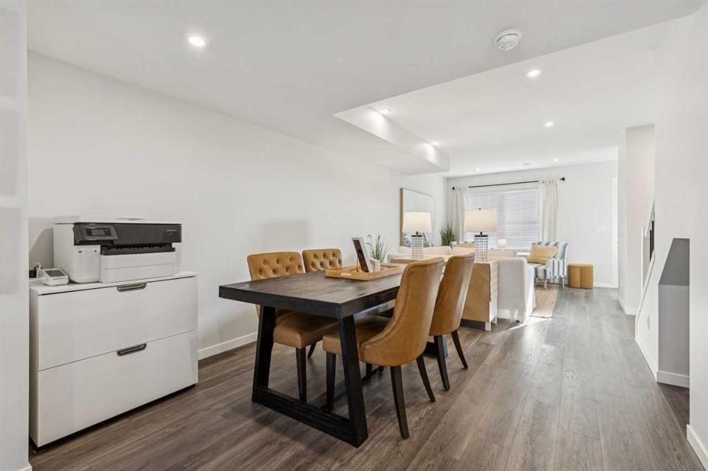 Welcome to Ambrosia, a beautifully designed 2-bedroom, 2.5-bath, two-storey stacked townhome in the scenic community of Crimson Ridge. Take in stunning views of the Bow Valley River, Downtown Calgary, and Canada Olympic Park, with a golf course just steps from your door. The open-concept main floor is perfect for entertaining, featuring a spacious kitchen island and luxury vinyl plank flooring throughout the main level and bathrooms. Upstairs offers two generous bedrooms designed for comfort and privacy, including a primary bedroom with walk-in closet and private ensuite, along with the convenience of upper-floor laundry. Built for superior energy efficiency with triple-pane windows and enhanced insulation, this home provides year-round comfort and reduced energy costs. Thoughtfully crafted for modern living. Photos are representative.