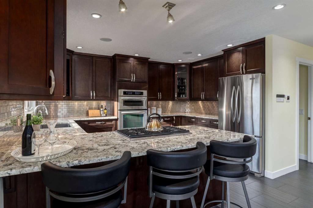 Welcome to the serene community of Glenbrook, where an ideal location in the very desirable “West Side” of Calgary, a small town feel with amazing walkability to all amenities, and numerous parks, playgrounds and schools combine to create a perfect area for all stages of life. This charming character home is situated on a large lot adorned with beautiful, mature trees and has been fully renovated to offer new home living in a well-established community. As you enter this welcoming home, you are greeted with a modern, open floor plan and lots of natural light. The spacious ‘chef’s kitchen’ features stainless steel appliances, numerous full-height, solid wood cabinets and granite countertops and is open to the cozy living room and optional dining area. The main-floor primary suite boasts ‘his and hers’ closets and a spa-like ensuite with a steam shower. The fully developed lower level offers two additional bedrooms, a full bathroom with an air jetted soaker tub and a fantastic media room with theatre seating. Outside, a large front porch with built-in chair rail, a concrete paver rear patio with room for lounging and dining, custom planters and storage benches, pressure-treated wood fences and gates, and an artificial turf lawn provide numerous options for outdoor enjoyment with minimal upkeep. The ‘crown jewel’ of this home is the newly built, heated, oversized double detached garage, which boasts epoxy flooring, ten-foot ceilings and attic storage trusses. Heated floors throughout, a new roof, Smart Home features, central air conditioning, all new electrical, new stucco and underground sprinklers are just a few of the fantastic upgrades found throughout this property.