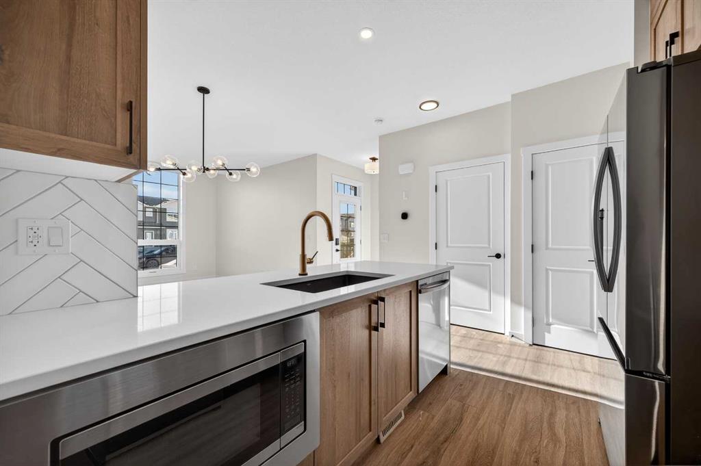 Welcome to 2238 Bayview Drive, a beautifully designed END UNIT street-side luxury townhome with NO CONDO FEES and a SEPARATE ENTRANCE! The Jasper townhome features an attached double garage, a rooftop patio, and low-maintenance living. The tastefully designed home offers over 1400 sq ft. of above-grade living space plus an unfinished basement with 9' ceilings, ready for your design ideas. On the main floor, you will find soaring ceilings in the open-concept living space and large windows that let natural light flow through. The chef-inspired kitchen offers beautiful cabinetry and stone countertops and is well-equipped with stainless steel appliances. The kitchen is open to the dining and living room, perfect for entertaining family and friends. Complimenting the main floor is a convenient half bath, storage and entry from the attached garage. Venturing upstairs, you will find a spacious primary retreat with a spa-like ensuite, a spacious shower, and a generous walk-in closet. Two additional bedrooms, a full bath, a 4-piece bath and laundry complete the upper level. Outside, enjoy spending time on your upper rooftop patio, which is situated above the garage. The basement offers a separate entrance, 9’ ceilings, and is ready for your creative design ideas. Bayview is a beautiful community with parks, benches and pathways that meander throughout the community and along the canals. Kids and adults alike will enjoy the outdoor basketball nets, gym, amphitheatre, and tennis courts, which convert into a skating rink in the winter. Come and see all the amenities the community offers for yourself! *RMS has been applied to the construction drawings provided by the builder. Taxes to be assessed.