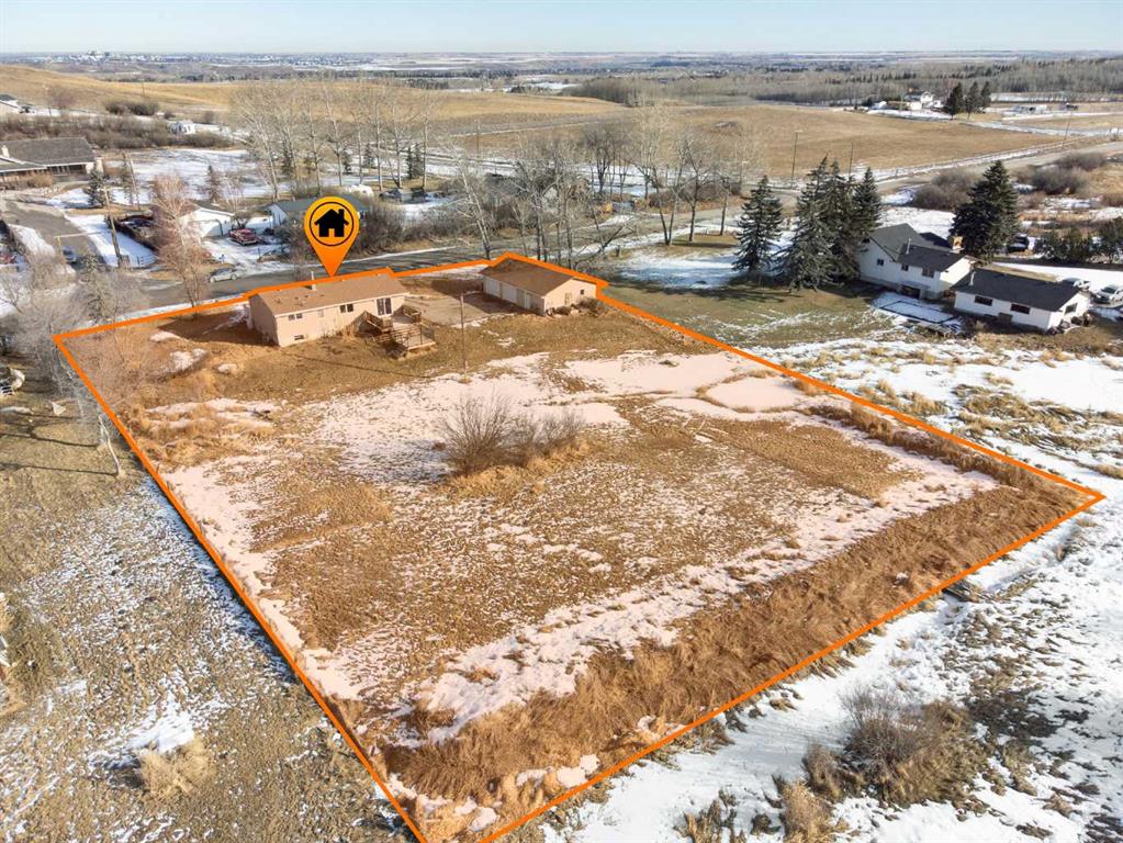 Immaculately revamped, move-in ready bungalow on a private 1-acre acreage in the heart of De Winton in the Hamlet . A rare rural property with city access, offering true country living with quick access to Calgary (8 min) and Okotoks (10 min). Enjoy quiet country nights, clear skies, scenic countryside views, a historic view of the original Macleod Trail, and local wildlife, all while being steps from the community centre, playground, and local amenities. Minutes to Millarville Farmers Market, Saskatoon Berry Farm. The land also offers potential for future business, commercial, or mixed-use opportunities, subject to Foothills County verification and re-designation approval. The bright, open-concept main floor features a skylight with a baby cathedral ceiling skylight, a huge length front porch, and an open kitchen and dining layout ideal for family living and entertaining. The updated kitchen includes a new dishwasher and induction stove. A warm family room with a cozy corner fireplace opens through new patio doors to an updated, spacious double deck overlooking a sunny south-facing yard, creating seamless indoor-outdoor living and great entertaining space. New air conditioning adds year-round comfort. Two generous bedrooms on the main floor plus a flexible basement room currently used as a game lounge and den. The primary suite comfortably fits a California King and boasts a newly renovated, bright 5-piece ensuite with oversized tub, plus a fully updated 3-piece main bath. The second bedroom easily accommodates a queen and works perfectly as a home office, guest room, or flex space. The unfinished basement includes a newly created game lounge, a large egress-style window, and is an easy conversion to an additional bedroom, media room, or recreation space.