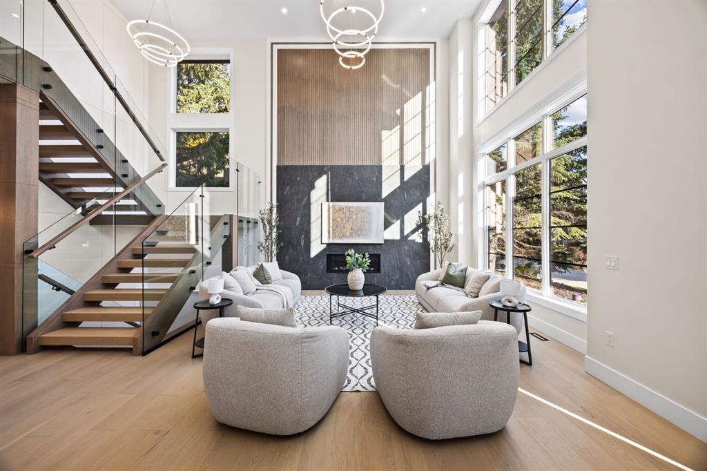 Welcome to this extraordinary, brand-new custom estate home, perfectly positioned in the highly sought-after community of Varsity Estates. Backing directly onto the golf course, this residence offers breathtaking views of the fairways from nearly every principal space, including the kitchen, dining room, master suite, guest bedroom, family room, bonus room, and the beautifully landscaped backyard. From the moment you enter, you’re greeted by soaring open-to-above ceilings, modern glass railings, and designer chandeliers that create an immediate sense of elegance and grandeur. The thoughtfully designed floor plan offers both formal and casual living spaces, featuring a sophisticated living room and a warm family room, each highlighted by its own fireplace. At the heart of the home is a gourmet kitchen equipped with premium JennAir appliances, a convenient coffee bar, and an expansive island perfect for entertaining. Seamlessly connected dining and living areas provide an ideal setting for gatherings, while expansive windows frame stunning golf course vistas. This residence features 4 generously sized bedrooms and 5.5 bathrooms, including a luxurious master suite with panoramic views, a spa-inspired ensuite with heated floors, steamer in shower and a custom walk-in closet. Additional highlights include an executive office, home gym, theatre room, and a wet bar designed for elevated entertaining. Luxury is in every detail—heated washroom floors, central air conditioning, and high-end lighting throughout. Practicality meets modern convenience with 200-amp electrical service, EV charger readiness, and a triple heated garage with epoxy flooring. Blending contemporary architecture with timeless finishes, this Varsity Estates masterpiece offers more than just a home—it delivers an unrivaled lifestyle in one of Calgary’s most prestigious communities. Book your Private Tour now.