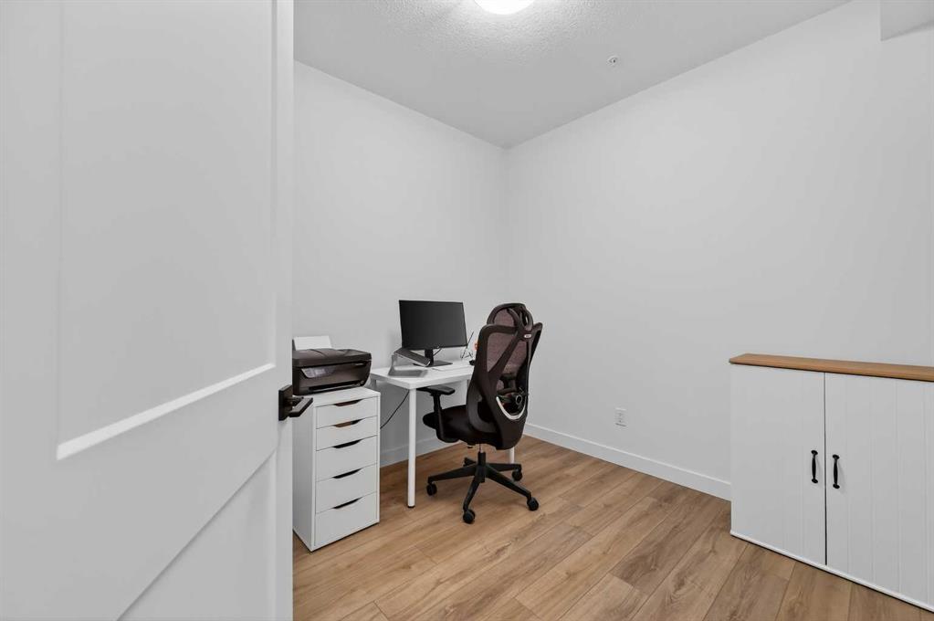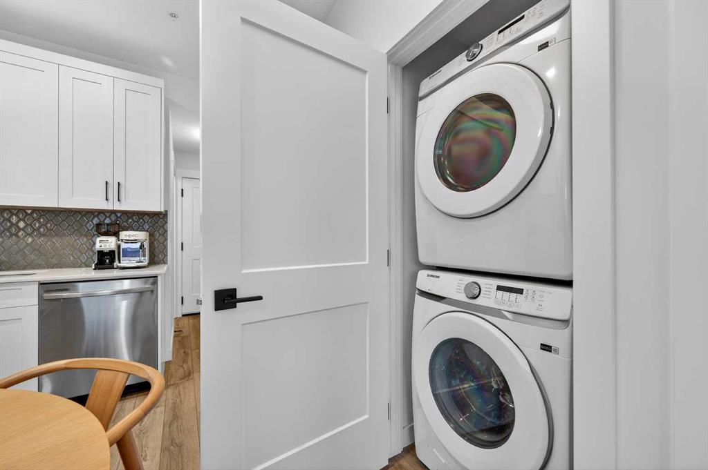 Inside, the home is bright and comfortable, enhanced by 9-foot ceilings and a functional layout that maximizes space and flow. The living area extends seamlessly to a generous private balcony, creating an easy extension for morning coffee or evening downtime. Air conditioning adds year-round comfort, while in-unit laundry provides the everyday practicality buyers value. An outdoor parking stall located just steps from the building entrance adds an extra layer of convenience, complemented by an assigned storage locker securely located in the underground parkade; perfect for seasonal items and additional storage needs. What truly sets this location apart is its rare duality. Just outside your door, a vibrant collection of grocery stores (T&T Supermarket, Walmart, Value Village), cafés, restaurants, and daily amenities are all within a short five-minute walk. In the opposite direction, expansive ravine and green-space pathways invite morning jogs, evening walks, and a connection to nature; offering a lifestyle that feels both connected and grounded.