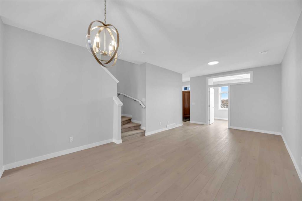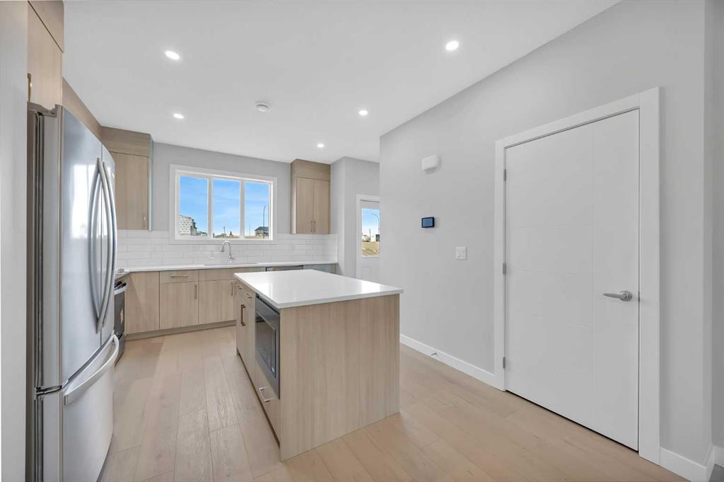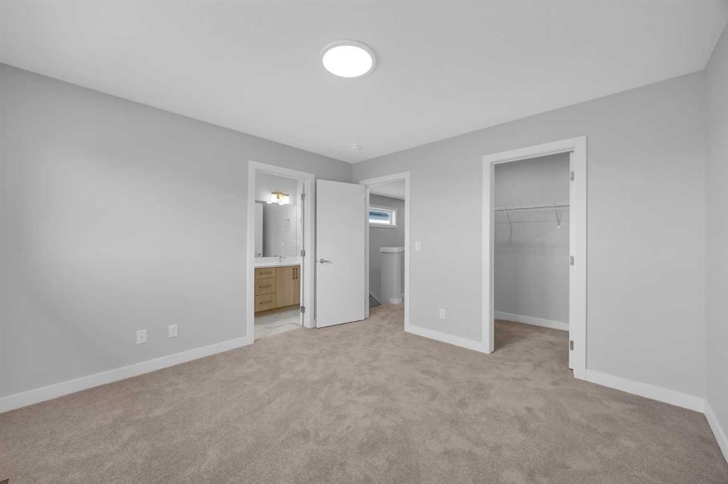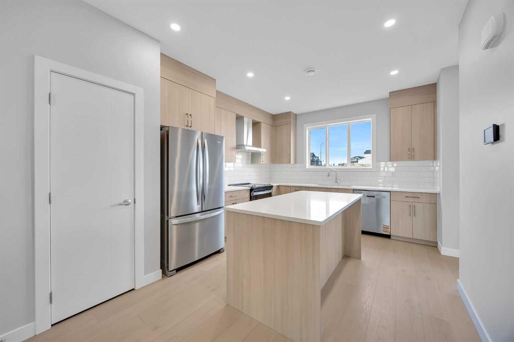 Welcome to The Edward by Partners Homes, a brand new quick possession opportunity in Keystone Creek, directly across from green space in one of North Calgary’s newest communities. With 3 bedrooms, a central bonus room, a main floor flex room, 3 full bathrooms, a side entrance, and rough-ins in place for future basement development, this home offers a layout designed for everyday living with long-term flexibility. The main floor is bright and open, starting with a front flex space that can easily function as a home office, guest room, or private area for multi-generational living. The kitchen is designed as the heart of the home, finished with full-height upgraded cabinetry, quartz countertops, a large island, and a chimney-style hood fan with built-in microwave. An upgraded electric range, stainless steel appliance package, and a gas line to the kitchen add both style and practicality. The dining and living areas connect seamlessly, creating a comfortable space for gathering and entertaining. A main-floor full bathroom with an upgraded tiled walk-in shower adds excellent versatility, while the rear mudroom keeps things organized and provides easy access to the backyard. A BBQ gas line is also included. Upstairs, the primary suite offers a relaxing retreat with a walk-in closet and a private ensuite featuring dual sinks and a beautifully tiled shower. Two additional bedrooms are complemented by a central bonus room, ideal for movie nights, a kids’ play area, or a second lounge. Upper-level laundry is included as well, with washer and dryer already in place. The basement features 9’ ceilings and rough-ins for future development, offering excellent potential for additional bedrooms or extended living space. Additional highlights include knockdown ceilings, a farmhouse exterior elevation, upgraded interior finishes, completed front landscaping, and a two-car gravel parking pad. Keystone Creek is a thoughtfully planned community surrounded by parks, wetlands, and connected pathways, with quick access to Stoney Trail, Deerfoot Trail, CrossIron Mills, YYC Airport, and everyday amenities. A fantastic opportunity to own a move-in-ready new construction home in a growing North Calgary neighborhood.