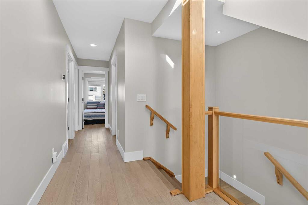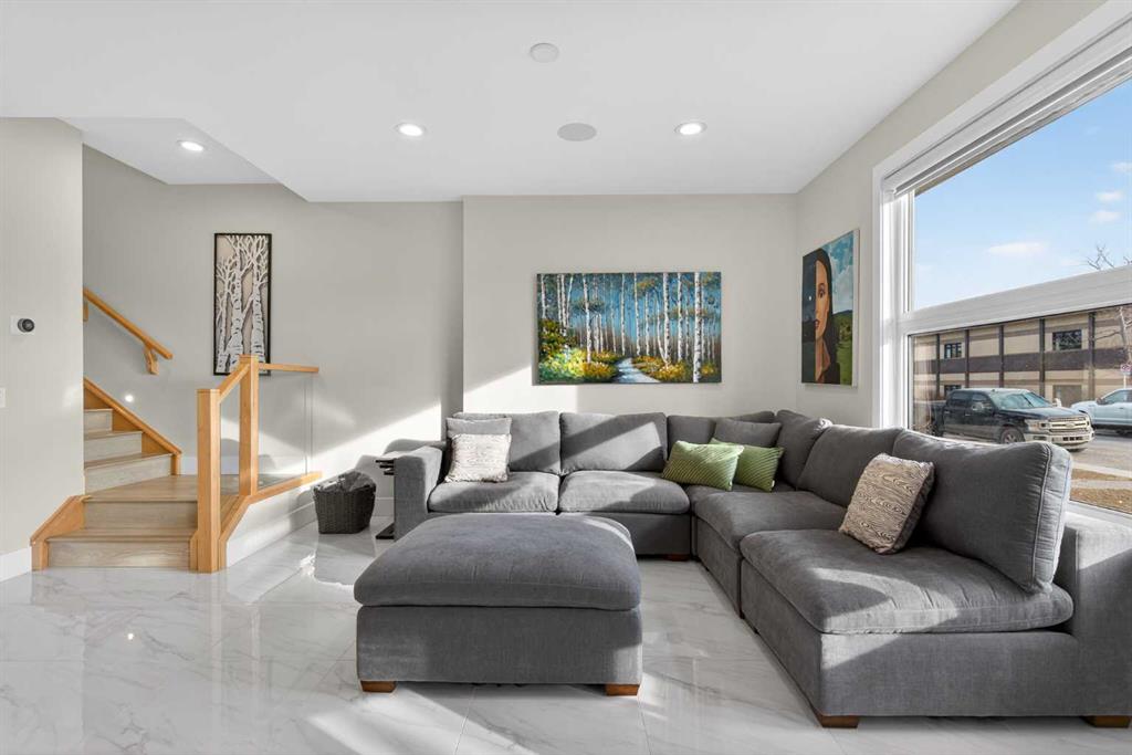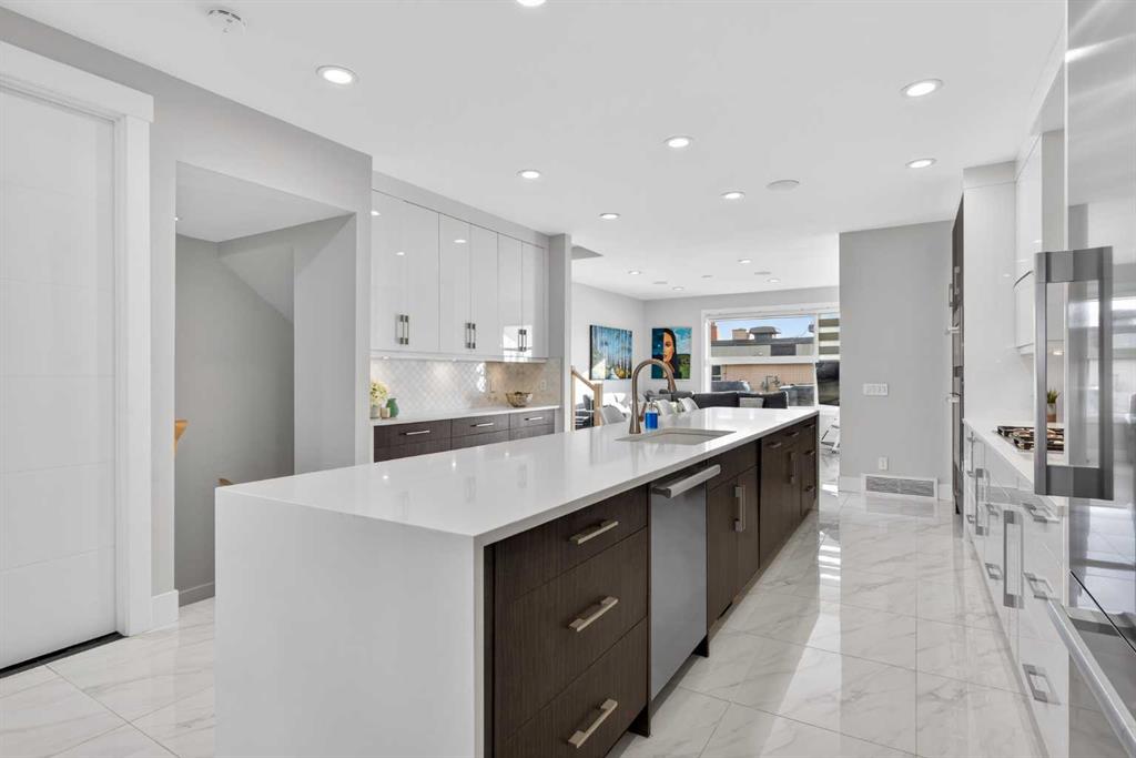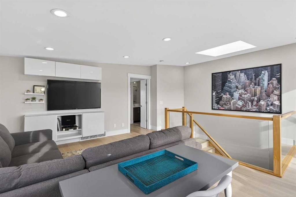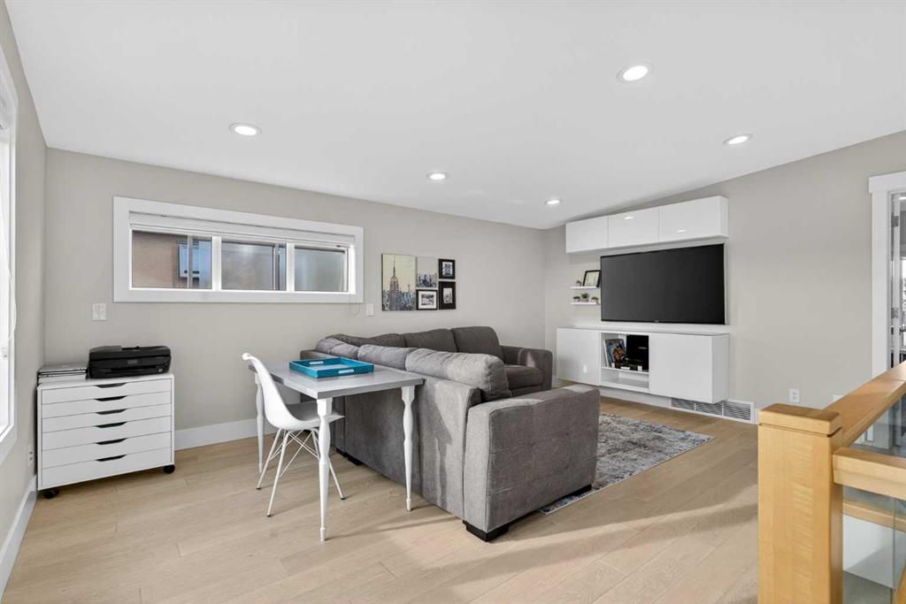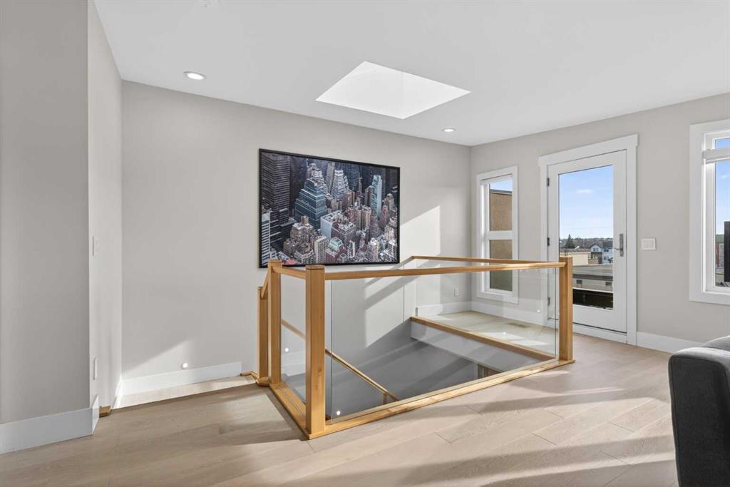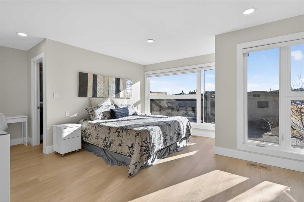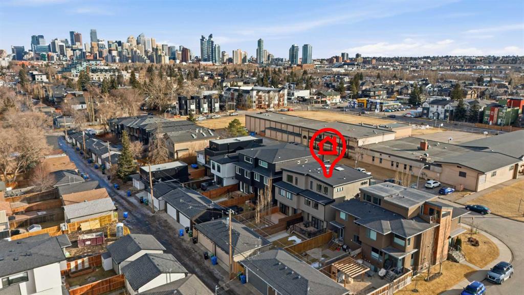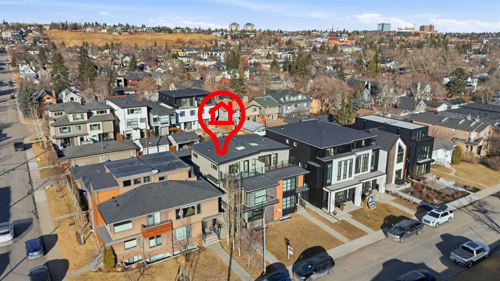 Here in the coveted inner city neighbourhood of West Hillhurst is where you’ll find your new home…this incredible 3-storey semi-detached loaded with the finest of luxury living, in this prime location only minutes to Kensington, Bow River pathway system & downtown. With over 3300sqft of living space spread over 4 levels, this stunning home enjoys a total of 5 bedrooms & 5 bathrooms, quartz countertops & central air, wide-plank engineered hardwood floors & panoramic city views as far as the eye can see! Showcased by expansive 9ft ceilings, you’ll just love the design of the main floor with its wonderful open flow & heated ceramic tile floors, from the airy living room with South-facing living room to the spacious dining room with sleek contemporary fireplace, & the fully-loaded kitchen with massive centre island with under-counter cabinets, top-of-the line Miele stainless steel appliances…including gas cooktop & built-in convection oven, bar area with wine fridge, walk-in pantry & custom cabinets highlighted by 2 huge pull-out spice/pantries. There are 3 bedrooms & 2 full bathrooms on the 2nd level…including the South-facing owners’ retreat with 2 walk-in closets, built-in shoe cabinet, floor-to-ceiling windows & spa-inspired ensuite with heated floors & quartz-topped double vanities, free-standing soaker tub & fantastic walk-in glass steam shower. Another bedroom with walk-in closet & its own private ensuite is on the top floor, plus a dynamite loft with skylight & South-facing balcony from where you can check out the downtown skyline & the surrounding neighbourhood. The lower level is beautifully finished with a 5th bedroom with walk-in closet, full bathroom with glass shower & terrific rec room area. Additional features include the 2nd floor laundry room with stacking Samsung steam washer & dryer, built-in ceiling speakers & flat ceilings, built-in storage cabinets in both the front foyer & rear mudroom, roughed-in radon system, closet organizers, heated tile floors in the main/2nd floor/3rd floor bathrooms, closet organizers & fully fenced backyard with deck (complete with gas bbq line) & insulated/drywalled detached 2 car garage with 220V wiring. Madeleine D’Houet School is steps from your front door & you’re walking distance to popular neighbourhood parks & playgrounds. A truly amazing opportunity you won’t want to miss…to make the home of your dreams come true!