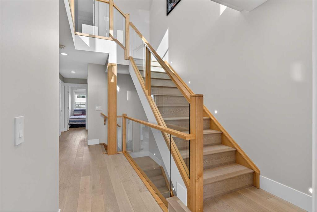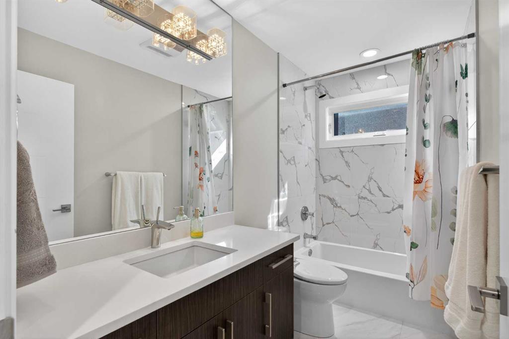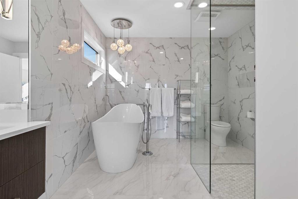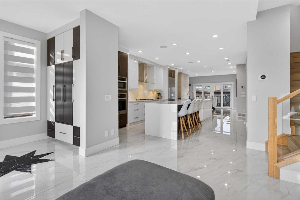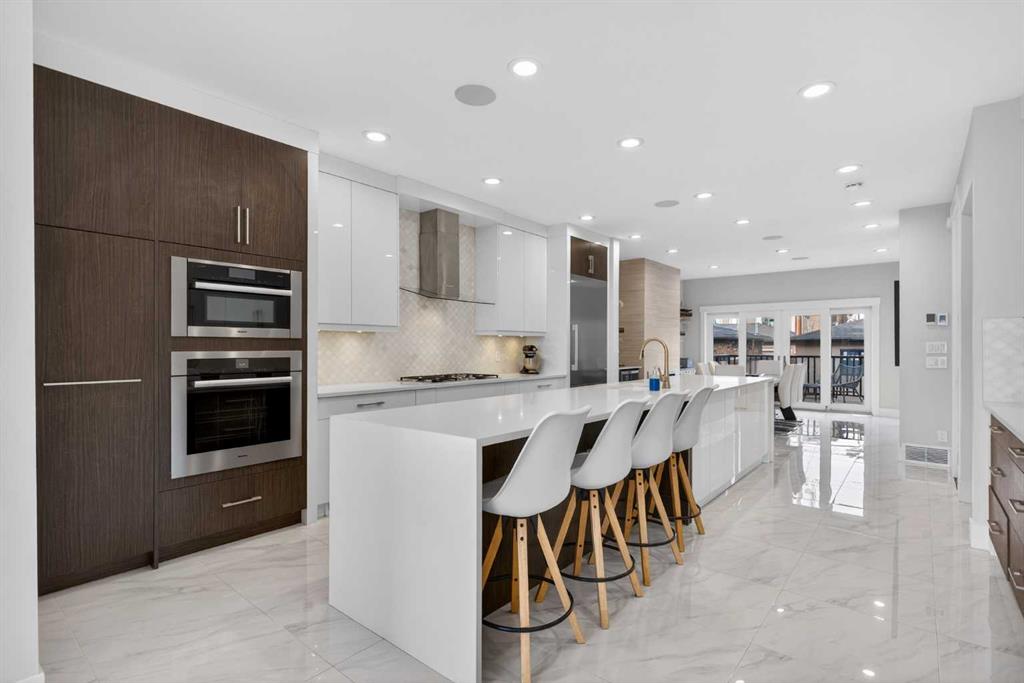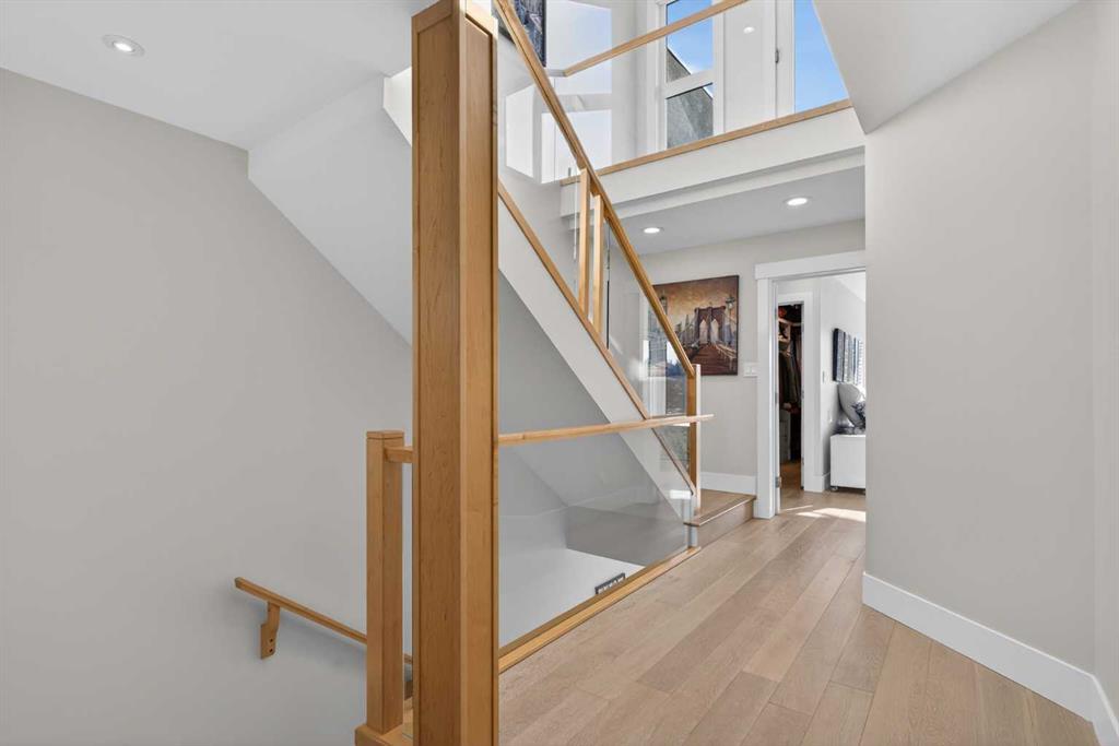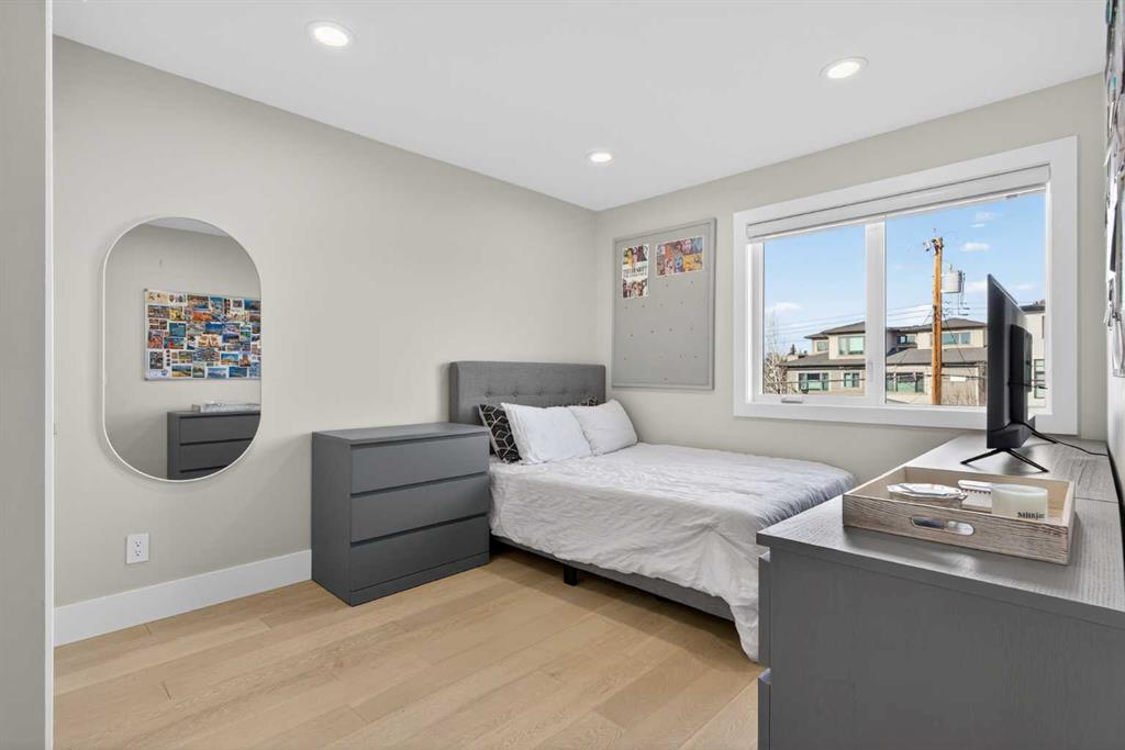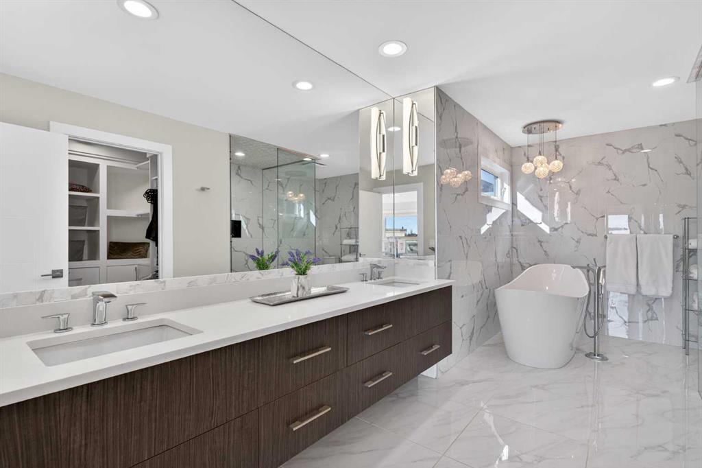 Here in the coveted inner city neighbourhood of West Hillhurst is where you’ll find your new home…this incredible 3-storey semi-detached loaded with the finest of luxury living, in this prime location only minutes to Kensington, Bow River pathway system & downtown. With over 3300sqft of living space spread over 4 levels, this stunning home enjoys a total of 5 bedrooms & 5 bathrooms, quartz countertops & central air, wide-plank engineered hardwood floors & panoramic city views as far as the eye can see! Showcased by expansive 9ft ceilings, you’ll just love the design of the main floor with its wonderful open flow & heated ceramic tile floors, from the airy living room with South-facing living room to the spacious dining room with sleek contemporary fireplace, & the fully-loaded kitchen with massive centre island with under-counter cabinets, top-of-the line Miele stainless steel appliances…including gas cooktop & built-in convection oven, bar area with wine fridge, walk-in pantry & custom cabinets highlighted by 2 huge pull-out spice/pantries. There are 3 bedrooms & 2 full bathrooms on the 2nd level…including the South-facing owners’ retreat with 2 walk-in closets, built-in shoe cabinet, floor-to-ceiling windows & spa-inspired ensuite with heated floors & quartz-topped double vanities, free-standing soaker tub & fantastic walk-in glass steam shower. Another bedroom with walk-in closet & its own private ensuite is on the top floor, plus a dynamite loft with skylight & South-facing balcony from where you can check out the downtown skyline & the surrounding neighbourhood. The lower level is beautifully finished with a 5th bedroom with walk-in closet, full bathroom with glass shower & terrific rec room area. Additional features include the 2nd floor laundry room with stacking Samsung steam washer & dryer, built-in ceiling speakers & flat ceilings, built-in storage cabinets in both the front foyer & rear mudroom, roughed-in radon system, closet organizers, heated tile floors in the main/2nd floor/3rd floor bathrooms, closet organizers & fully fenced backyard with deck (complete with gas bbq line) & insulated/drywalled detached 2 car garage with 220V wiring. Madeleine D’Houet School is steps from your front door & you’re walking distance to popular neighbourhood parks & playgrounds. A truly amazing opportunity you won’t want to miss…to make the home of your dreams come true!