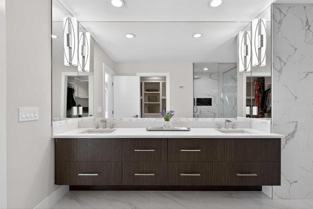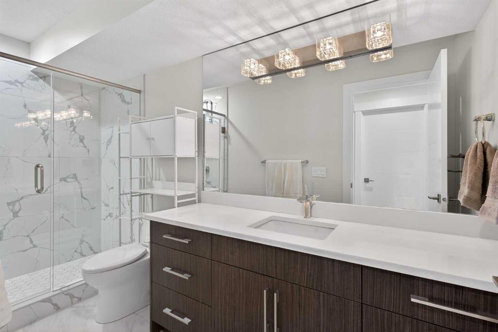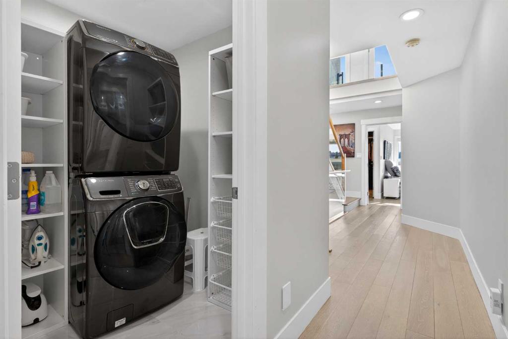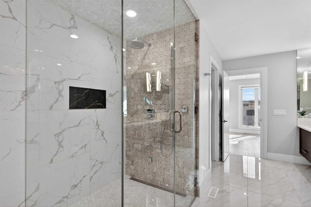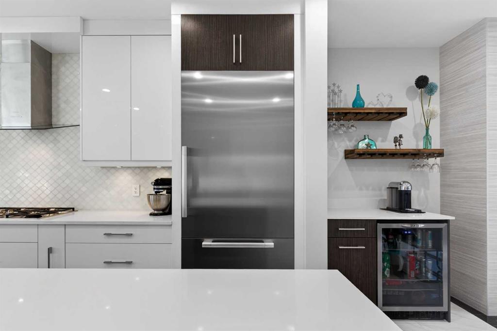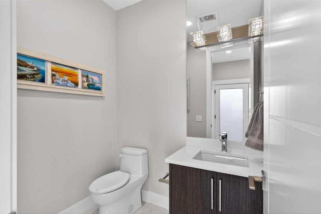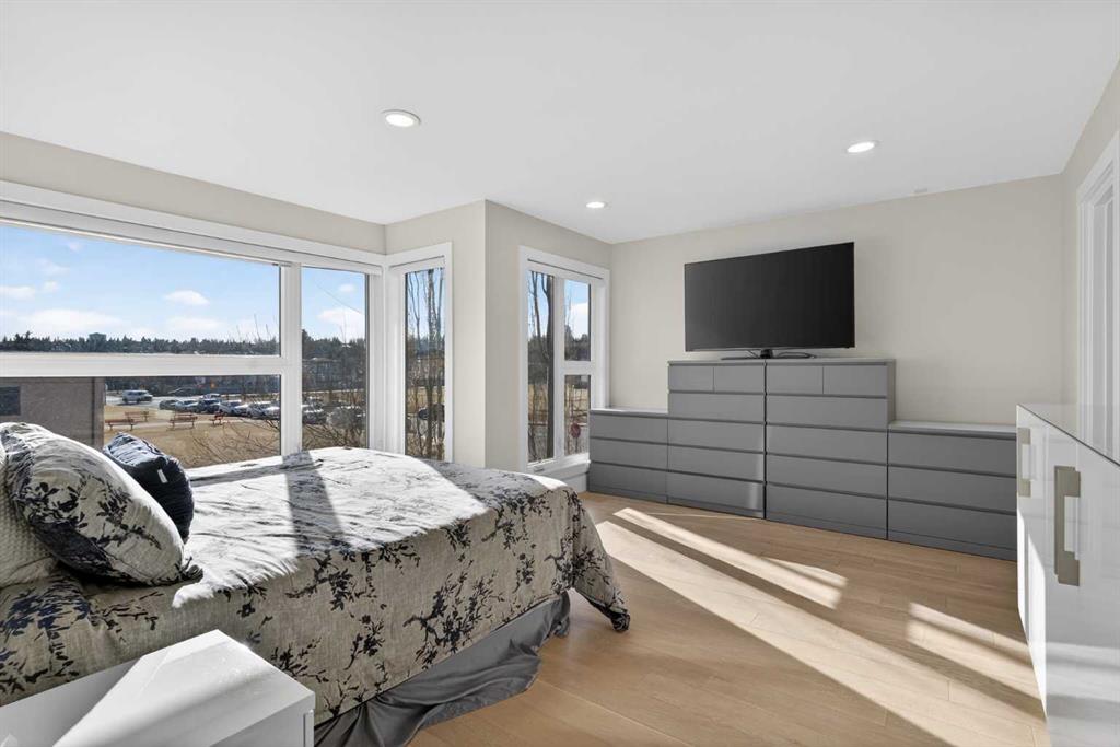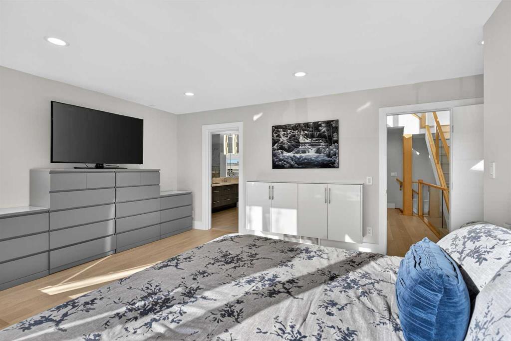 Here in the coveted inner city neighbourhood of West Hillhurst is where you’ll find your new home…this incredible 3-storey semi-detached loaded with the finest of luxury living, in this prime location only minutes to Kensington, Bow River pathway system & downtown. With over 3300sqft of living space spread over 4 levels, this stunning home enjoys a total of 5 bedrooms & 5 bathrooms, quartz countertops & central air, wide-plank engineered hardwood floors & panoramic city views as far as the eye can see! Showcased by expansive 9ft ceilings, you’ll just love the design of the main floor with its wonderful open flow & heated ceramic tile floors, from the airy living room with South-facing living room to the spacious dining room with sleek contemporary fireplace, & the fully-loaded kitchen with massive centre island with under-counter cabinets, top-of-the line Miele stainless steel appliances…including gas cooktop & built-in convection oven, bar area with wine fridge, walk-in pantry & custom cabinets highlighted by 2 huge pull-out spice/pantries. There are 3 bedrooms & 2 full bathrooms on the 2nd level…including the South-facing owners’ retreat with 2 walk-in closets, built-in shoe cabinet, floor-to-ceiling windows & spa-inspired ensuite with heated floors & quartz-topped double vanities, free-standing soaker tub & fantastic walk-in glass steam shower. Another bedroom with walk-in closet & its own private ensuite is on the top floor, plus a dynamite loft with skylight & South-facing balcony from where you can check out the downtown skyline & the surrounding neighbourhood. The lower level is beautifully finished with a 5th bedroom with walk-in closet, full bathroom with glass shower & terrific rec room area. Additional features include the 2nd floor laundry room with stacking Samsung steam washer & dryer, built-in ceiling speakers & flat ceilings, built-in storage cabinets in both the front foyer & rear mudroom, roughed-in radon system, closet organizers, heated tile floors in the main/2nd floor/3rd floor bathrooms, closet organizers & fully fenced backyard with deck (complete with gas bbq line) & insulated/drywalled detached 2 car garage with 220V wiring. Madeleine D’Houet School is steps from your front door & you’re walking distance to popular neighbourhood parks & playgrounds. A truly amazing opportunity you won’t want to miss…to make the home of your dreams come true!