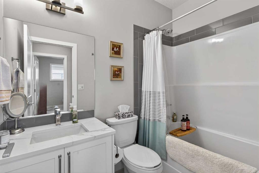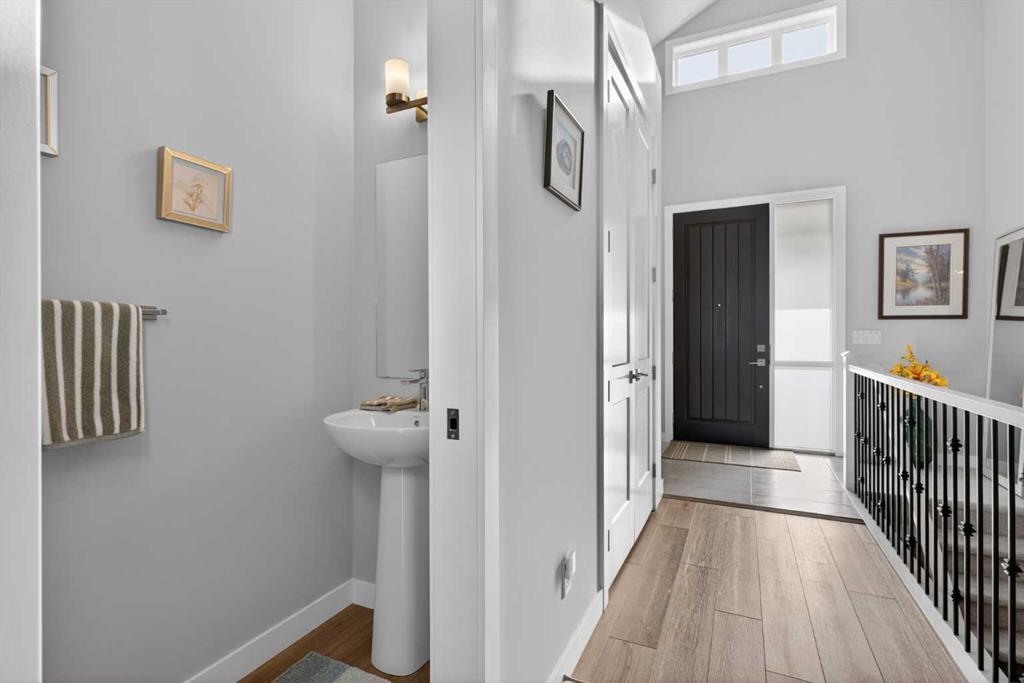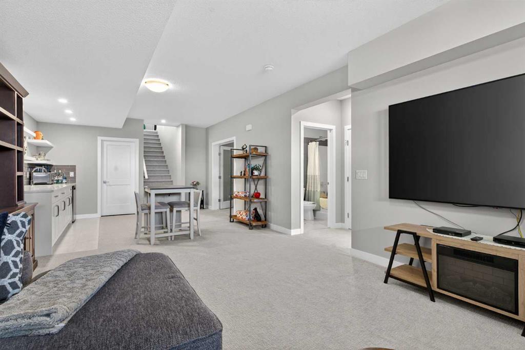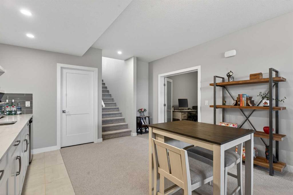 Rare opportunity for you here in ARRIVE AT CRESTMONT WEST in this beautifully upgraded villa in this exclusive location backing onto a stormwater pond & walking trails. Original owner of this mint condition bungalow, which offers 2 bedrooms & 2.5 bathrooms, upgraded luxury vinyl plank flooring & central air, oversized heated single garage & wonderful covered balcony where you can sit back, relax & enjoy the tranquil views. Showcased by expansive vaulted ceilings & bathed in natural light, you’ll simply adore the free-flowing design of the main floor with its living room with remote-controlled electric Dimplex fireplace with custom wood/stone mantle, airy open concept dining room & showpiece custom kitchen with quartz waterfall island & pantry, subway tile backsplash & KitchenAid stainless steel appliances including built-in convection oven & electric cooktop. The relaxing owners’ retreat boasts a huge walkthrough California Closet & stunning ensuite with double vanities, heated tile floors & oversized walk-in shower with floor-to-ceiling tile surround. The lower level – with oversized windows, is beautifully finished with a 2nd bedroom with walk-in closet, bathroom with heated tile floors & dynamite rec room with quartz-topped wet bar. Main floor laundry room with Whirlpool washer & dryer. Additional upgrades include Kinetico water softener & roughed-in radon system, HardieBoard & stone exterior, natural gas line for your BBQ on the balcony, custom window blinds, quartz counters in the bathrooms & kitchen, welcoming front verandah, underground sprinklers & tankless water system. Prime location in this exclusive estate community just steps to Crestmont Village Shoppes, only a short few minutes to Crestmont Hall & easy access to the TransCanada Highway & Stoney Trail ring road to take you to the Calgary Farmers' Market West, Canada Olympic Park & Calgary Climbing Centre, major retail centers & hospitals, downtown & beyond!