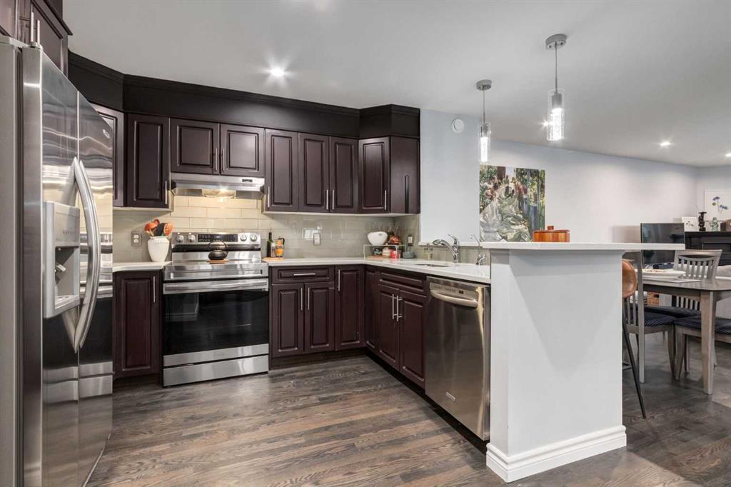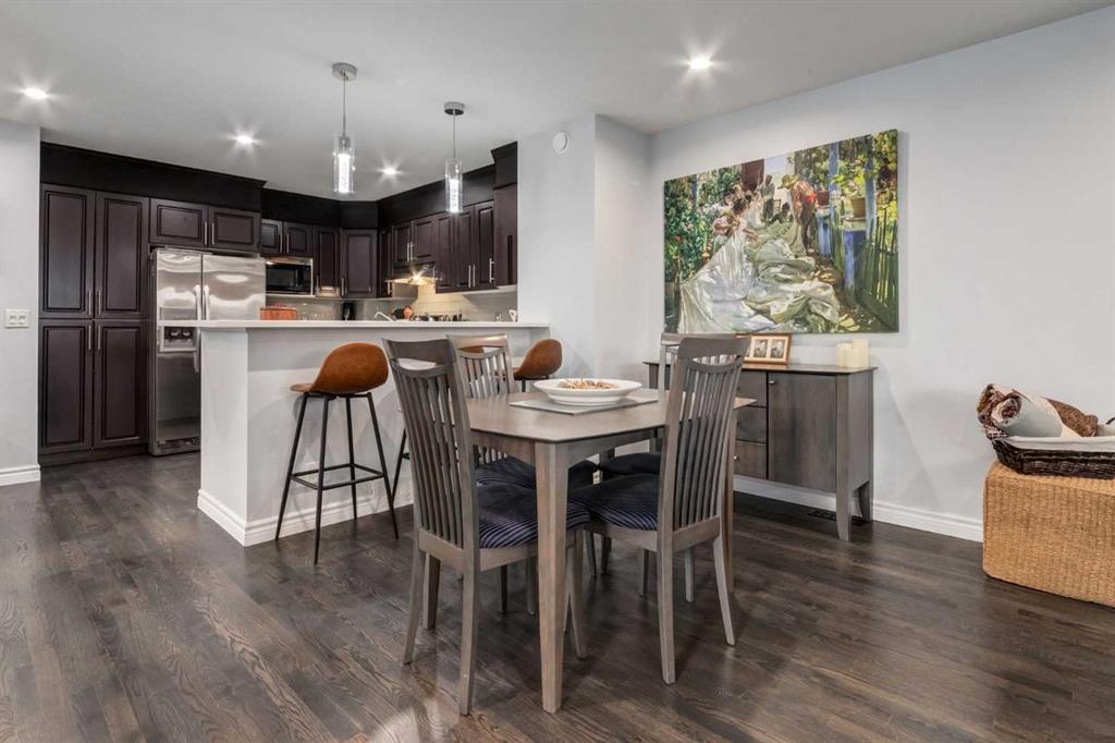 AMAZING VALUE! Your wait is over! This move in ready two bedroom, two and a half bathroom townhome in the community of Richmond SW has it all! Close to schools, shopping and easy access to Crowchild, this home provides convenience and comfort in one! With a family friendly floor plan, recent upgrades and renovations, it checks off all your boxes! Entering the home, you are greeted with a convenient mud room and half bathroom to your left with a nice size closet for your coats and boots. Recent main floor renovations include recessed lighting throughout the kitchen and living room, as well as brand new blinds and stunning new hardwood flooring. In the kitchen you will love the sophisticated dark cabinetry, pantry and stainless steel appliances together with a range with built in air fryer. The Dining Room allows for effortless entertaining and the good sized Living Room complete with gas fireplace is great for cozy nights at home. Heading up to your second floor, you will find your primary suite with well sized walk in closet and access to the four-piece bathroom, with a second bedroom on the opposite end of the hall. You will love the new flooring throughout the second level, fresh paint and renovated bathroom with stunning new glass shower with its three head rainfall system plus relaxing soaker tub. Moving down to the lower level is the perfect family room for entertainment and movie nights! The lower level is completed with a three-piece bathroom and laundry room. Looking out your windows, this home is surrounded by lush green trees and the perfect deck to enjoy an evening cocktail. Featuring a new gas line to connect your BBQ and fire pit. Enjoy space for your vehicle in the detached garage. Plus during the Calgary winters, enjoy the benefit of snow removal included with your unit. If you are looking for a great place to call home, starting your new home journey or looking to downsize without compromise, this home is for you! Don't hesitate, this likely won't last too long so contact your Realtor today to view!