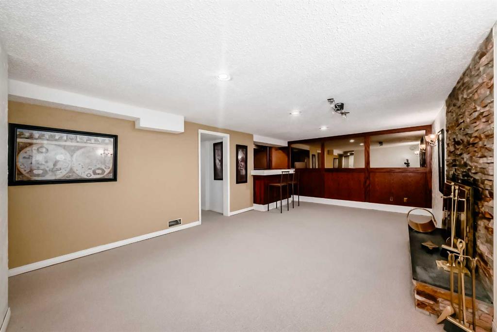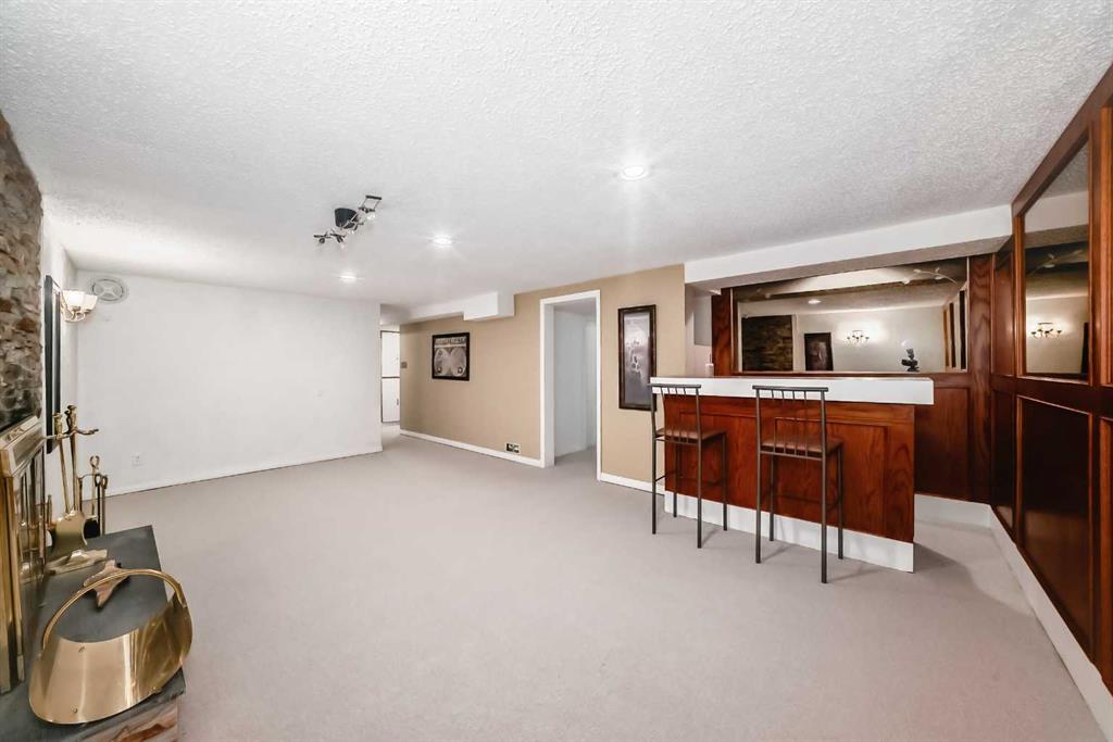 The fully developed basement is warm and welcoming, featuring brand new Berber carpet, fresh paint, a cozy family room, wet bar, and stylish **tinted glass panel wall**. An extra-large bedroom, 4-piece bathroom, and abundant storage in the mechanical area make this lower level as functional as it is comfortable.