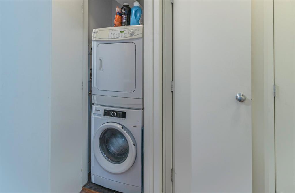 Fully furnished modern 1 bed/1bath condo unit on the "Flats Tower" of The Prestigious Waterfront Condo, Calgary's upscale Downtown neighborhood. Open concept floor plan, 9' ceilings, floor to ceiling windows. End unit & balcony is exposed to the view of the beautiful courtyard. Kitchen is fully equipped with high-end stainless steel appliances. Quartz central island & countertop. Full heights cabinetry. Bedroom has built-in head board, double bed-frame & 2 night tables. In-suite laundry & air conditioned. Unit includes an assigned parking stall & a storage locker. Enjoy living in a resort style building with superior amenities : concierge service, fitness facilities, hot tub, sauna, movie theatre, social lounge, outdoor garden patio, visitor parking & car wash. Move in & enjoy the lifestyle of a waterfront community along the Bow River & Princess Island Park. Walking distance to Downtown, Chinatown, East Village & Eau Claire Market, shops & restaurants. Bike or walk along the water path. Perfect for first time buyers or as an investment property. A great property to consider.