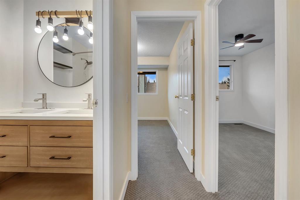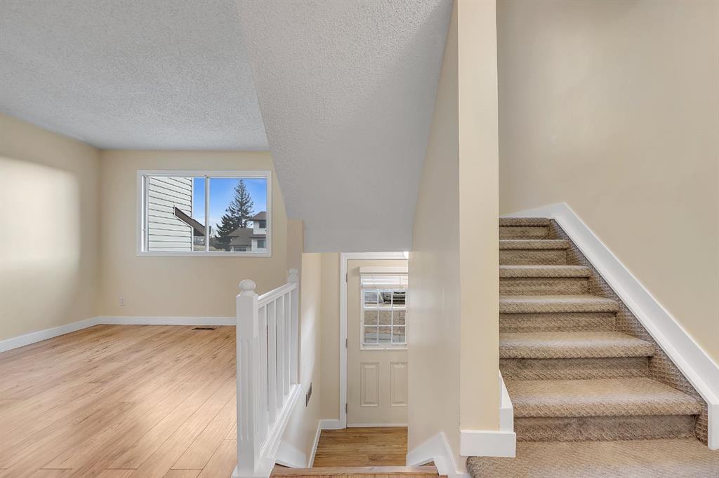 Welcome to this bright and inviting townhouse perfectly located in the heart of Cochrane, in the community of Glenbow! Freshly painted throughout, this well-maintained home offers over 1500 square feet of functional living space. Step inside to a bright and welcoming dining area that flows into the kitchen and spacious living room. Large windows fill the main floor with natural light, making this space inviting. Upstairs features 3 large bedrooms, and a 5 piece bathroom. A double vanity for added convenience. The finished basement is excellent for additional living space, a home office or an entertainment area! Enjoy the added bonus of having an end unit, TWO dedicated parking stalls (located in front of the unit) & access to the community garden! Walking distance from shops, parks, playgrounds, schools & shopping- all the downtown amenities that Cochrane has to offer! This home is an excellent opportunity for first-time home buyers, investors, or if you are looking for low-maintenance living!