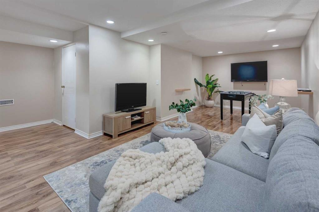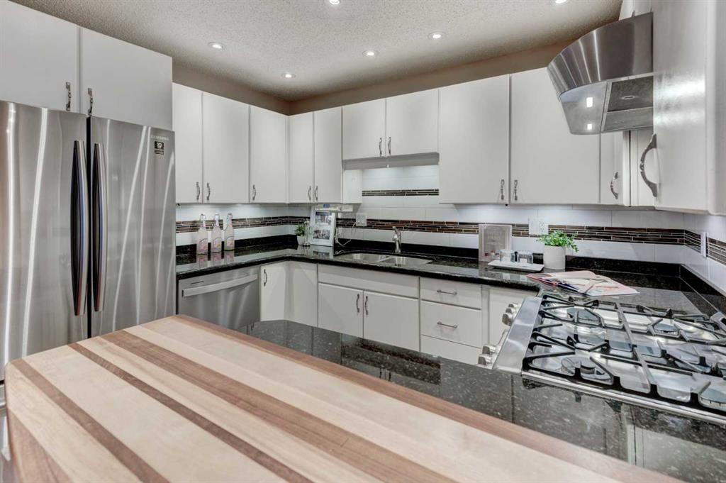 The fully finished basement provides a massive recreation room along with extensive storage options to keep your home organized. Outside, the living room views overlook a private front patio and fully enclosed yard, offering an ideal secluded spot for summer BBQs and soaking up this tranquil outdoor space. For parking and convenience, the home includes a double rear attached garage. Upgrades include; All Triple Pane Windows, 2 SkyLights, Gas Insert in Fireplace, French Door Fridge, Dishwasher, Gas Stove, All Bathrooms, Hard Wood Flooring, HWT. Located in the desirable community of Woodbine, this property offers unparalleled access to Fish Creek Provincial Park, scenic walking paths, and vibrant green spaces. Residents enjoy a mature neighborhood atmosphere and quick access to Stoney Trail, nearby playgrounds, public transit, and premium shopping. A home of this caliber in such a premier complex will not last long. Book your private showing today!