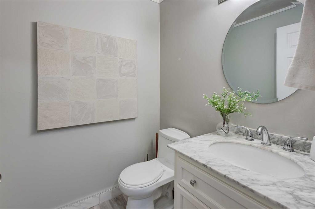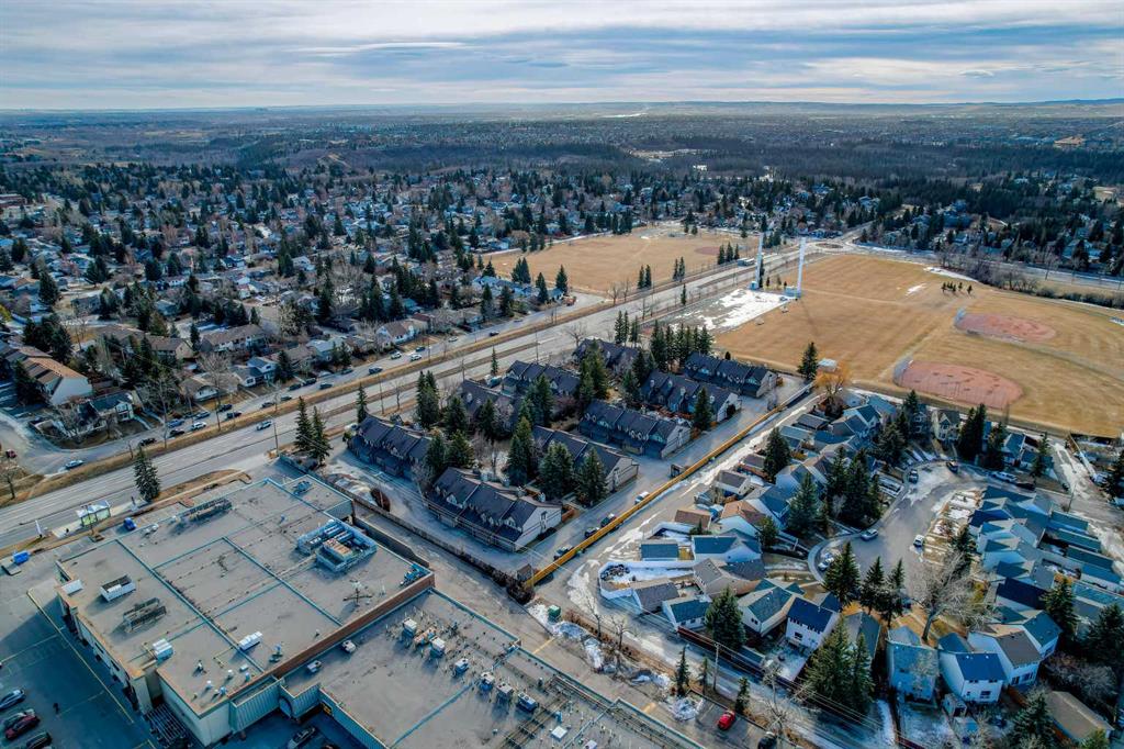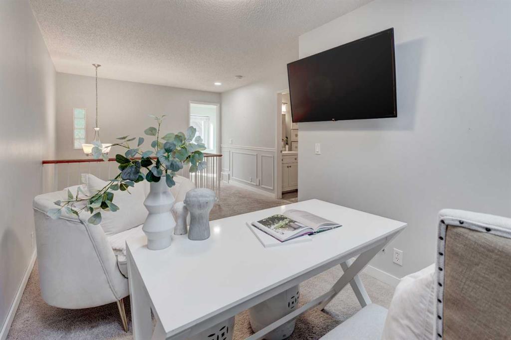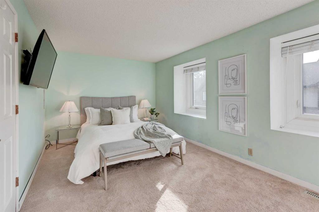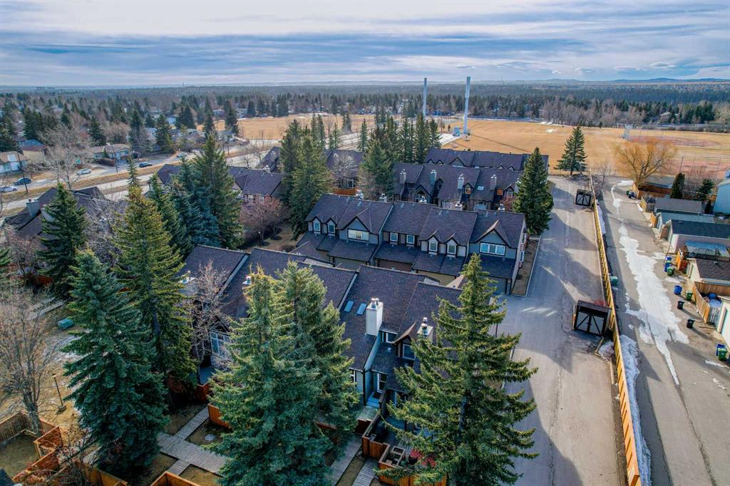 Welcome to your townhome in the highly sought-after Tiffany Lane know for its tranquil and unique Canmore feel complex. This exceptional residence offers over 1,933 square feet of well-designed living space across three levels of sophisticated modern interior. Step into a bright foyer that showcases a warm color palette complemented by abundant natural light with newer triple pane windows throughout and hard wood flooring, providing the perfect canvas for any decor style. The open-concept design allows for seamless transitions between daily life and high-end entertaining. The living room serves as a dramatic centerpiece with an impressive vaulted ceiling and a cozy glass insert fireplace. A culinary delight, the kitchen boasts extensive cabinetry, sleek quartz counters, newer stainless steel with gas stove, a contemporary backsplash with undermount lighting, and a unique butcher block breakfast bar with seating for two. Adjacent to this space sits a generous dining room capable of accommodating everything from intimate gatherings to large dinner parties. A private convenient two-piece powder room completes the main level. The upper-level sanctuary features a serene primary retreat equipped with two stylish built-in closets and a luxurious three-piece ensuite featuring a walk-in shower. A second oversized bedroom and a beautifully appointed main bathroom offer plenty of space for family or guests. Highlighting the uniqueness of this specific property is a bright loft area with two skylights, a feature exclusive to this unit alone within the complex. This versatile space is ideal for a home office or a secondary family room.
