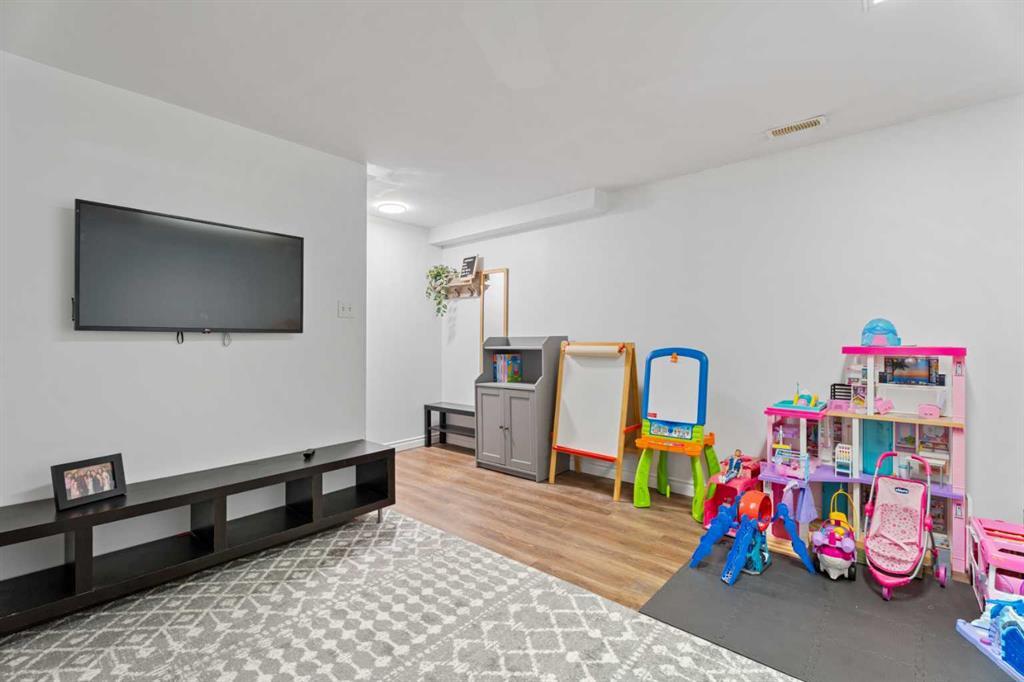 The fully developed basement offers a large recreation room, a fourth bedroom, a 3-piece bath, and convenient laundry facilities. Recent upgrades include vinyl plank flooring (Basement - 2023), new washer and dryer (2023), new over-the-range microwave (2023), and a new refrigerator (2024). The exterior was freshly painted in 2025.